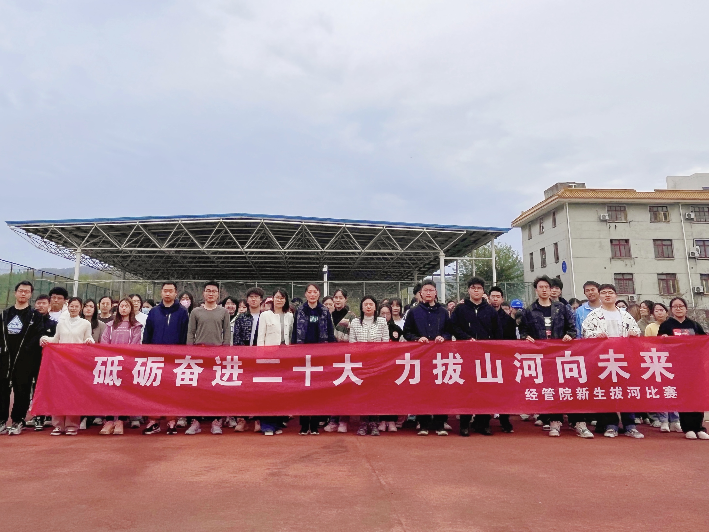2023年3月29日,南京林业大学经济管理学院在老操场成功举办以“砥砺奋进二十大,力拔山河向未来”为主题的新生拔河比赛。学院组织员兼研究生辅导员赵淑颖老师和22级辅导员齐蓓老师参加了此次比赛,22级研究生和本科生共14支队伍以高度热情参与其中。