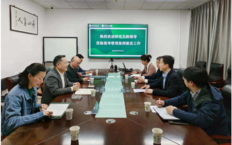 2023年4月4日下午,研究生院院长韩建刚,副院长南军锋、招生办公室主任葛昊、专业学位办公室张群老师一行来我院进行调研座谈,就管理案例建设工作展开深入交流。学院院长杨红强、副院长邓德强、专业学位办公室主任沈弋,MBA教育中心主任姚彦参加座谈。