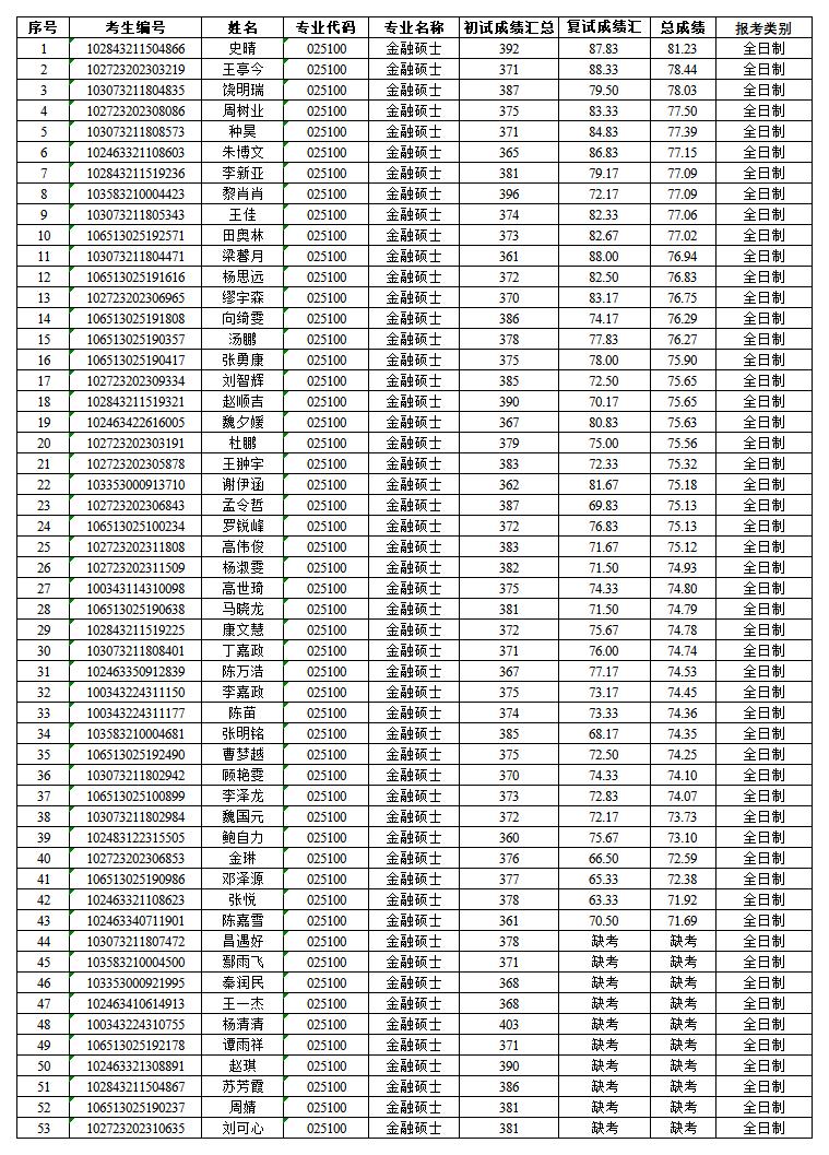 2023年南京林业大学金融硕士复试第一次调剂复试成绩公布