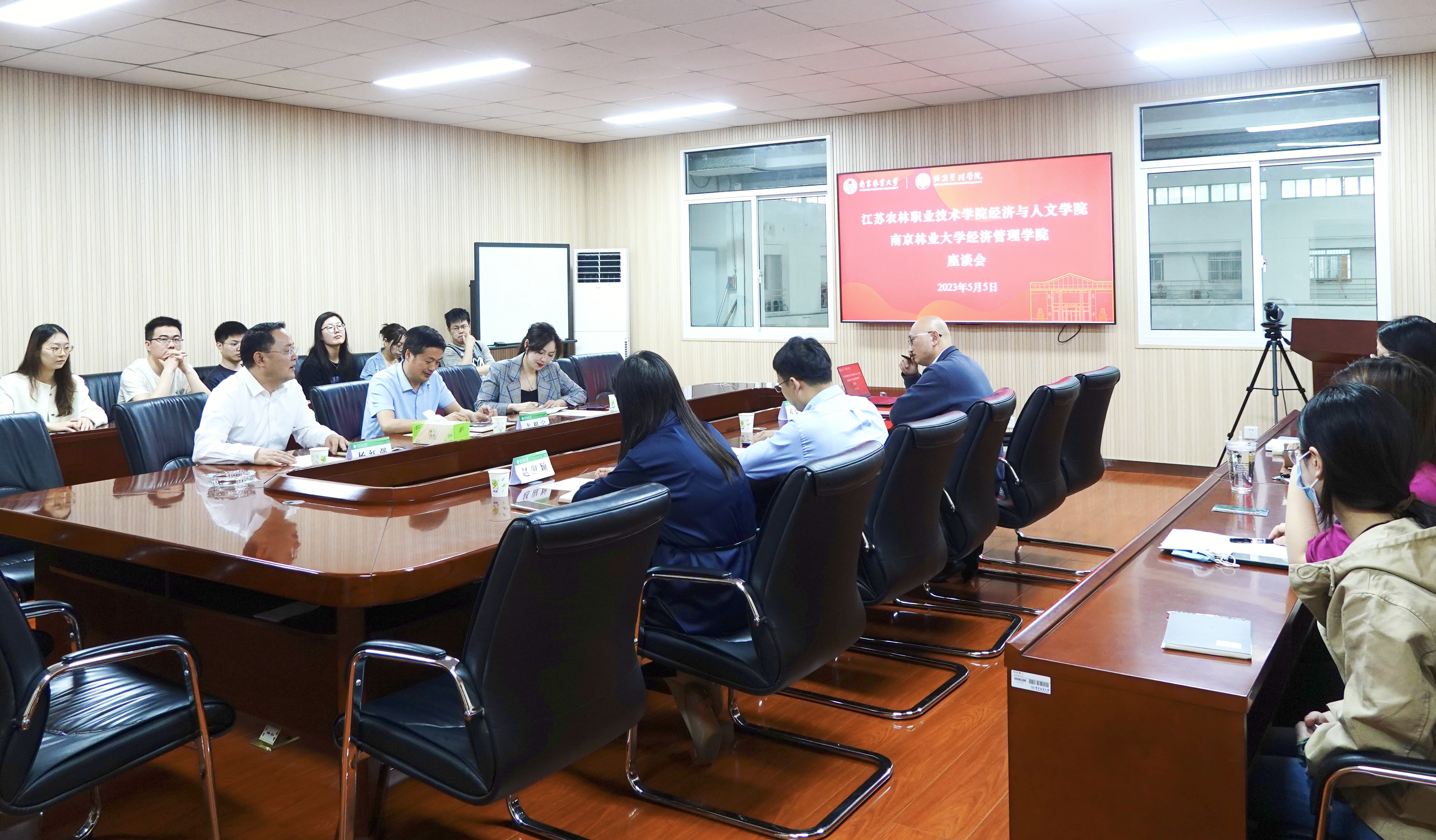 江苏农林职业技术学院经济与人文学院院长吉根宝对学院的热情接待表示衷心感谢,他简要介绍了江苏农林职业技术学院以及经济与人文学院师资力量、专业设置、科研成果以及社会服务等相关情况。他表示,江苏农林职业技术学院和南林有着深远的合作,希望以此次交流学习为契机,通过“大手”拉“小手”的形式,引进高层次人才,助推职业教育发展。
