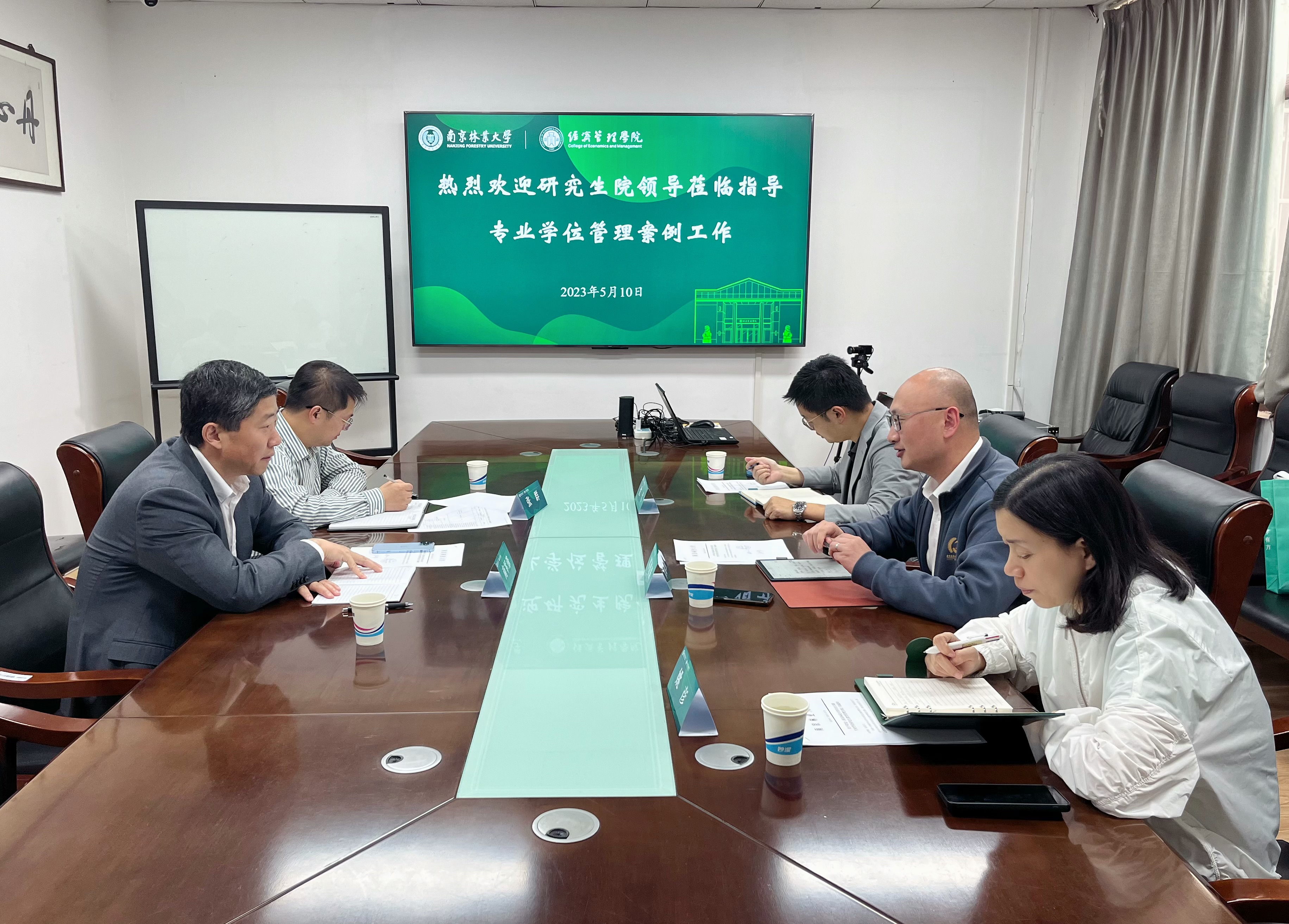 2023年5月10日上午,研究生院副院长南军锋、专业学位办公室张群老师一行来我院座谈,就案例建设和培养方案修订等工作开展调研指导。经济管理学院副院长邓德强、专业学位办公室主任沈弋、MBA教育中心主任姚彦参加座谈。