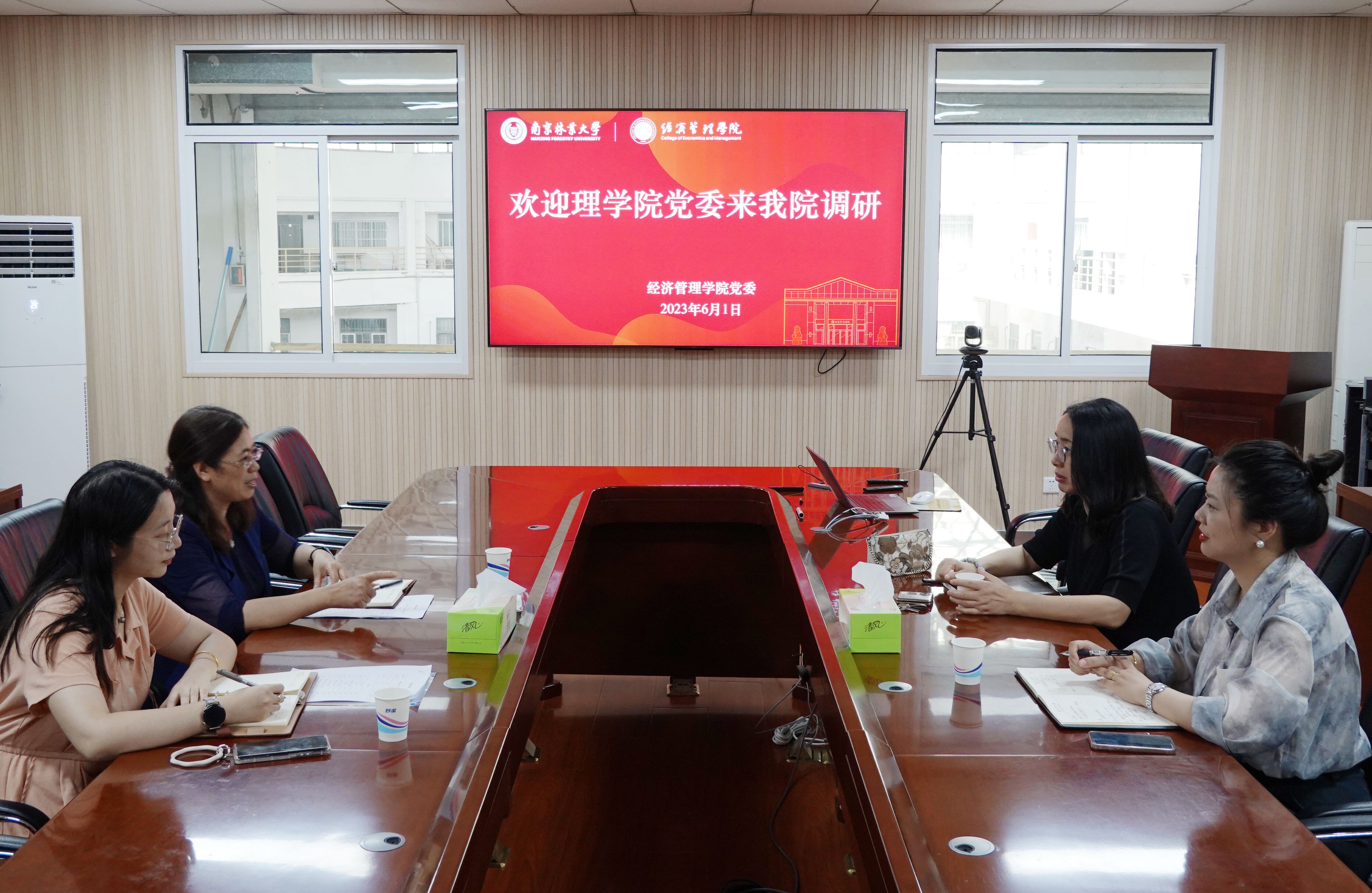 为深入开展学习贯彻习近平新时代中国特色社会主义思想主题教育,高质量落实调查研究,6月1日下午,经济管理学院与理学院在文科楼C208会议室开展党建工作调研交流会。理学院党委书记赵安珍、组织员蔡一凡同经管院党委书记唐萍、组织员赵淑颖深入交流研讨。