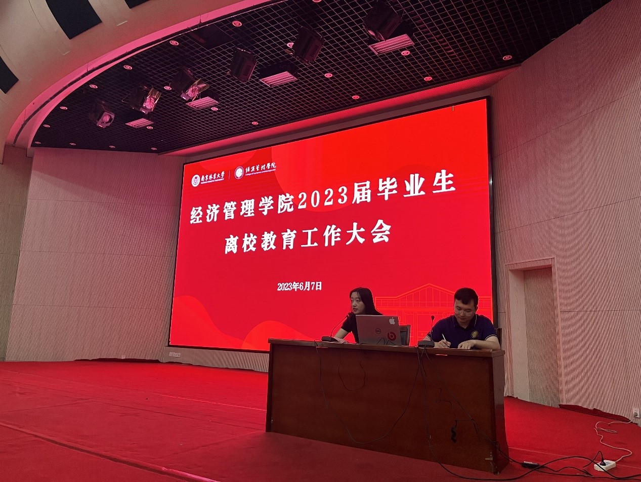 充分做好2023届毕业生离校前的各项工作,上好毕业生思想政治教育的“最后一课”和尽快适应社会的“重要一课”,切实保障毕业生安全离校、文明离校、健康离校,经济管理学院于6月7日在教学五楼报告厅开展毕业生安全离校教育工作大会,2023届全体本科生参加此次会议,会议由2023届辅导员谢冰清、冯金小主持。