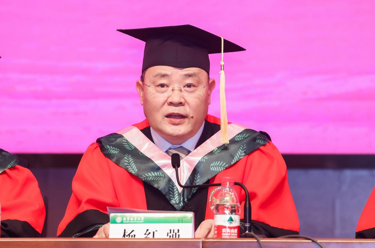 副院长邓德强宣读了《关于批准我校经济管理学院2023届于皓等646位同学毕业的决定》;院长杨红强宣读了《关于授予我校经济管理学院2023届于皓等646位同学学士学位的决定》。随后,主席台就座的领导、老师为会场所有同学进行拨穗仪式,在这一环节,2020届本科生代表也一同上台接受拨穗,他们当时因为疫情防控要求未能举办毕业典礼,因此学院邀请他们来到2023届毕业典礼现场,与学弟学妹们一起,完成属于自己的拨穗仪式,感谢他们对疫情防控工作的配合,也祝福他们明天会更好。