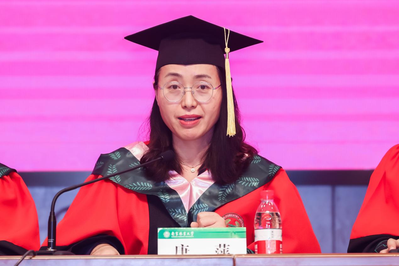 伴随着庄严的国歌声,毕业典礼正式开幕。南京林业大学党委常委、副校长缪子梅发表讲话,“你们是南林事业发展的亲历者。2019年,大家在‘双一流’建设中奋勇逐梦;2020年,在同心抗疫中砥砺前行;2021年,林钟声声,南林重回全国百强高校名单;2022年,再续华章,我们迎来南京林业大学120周年华诞。在这四年的时间里,你们参与了南林砥砺奋进的新征程,增添了南林挺进百强的硬实力,丰富了青春的内涵、收获了沉甸甸的硕果。”缪子梅对同学们顺利完成本科学业表示祝贺,并提出三点殷切希望:第一,希望同学们坚守家国情怀,把握时代脉搏,与祖国同呼吸、共命运;第二,希望同学们坚守绿色发展理念,担当使命,推动可持续发展;希望同学们坚守初心理想,热爱生活,创造美好人生。