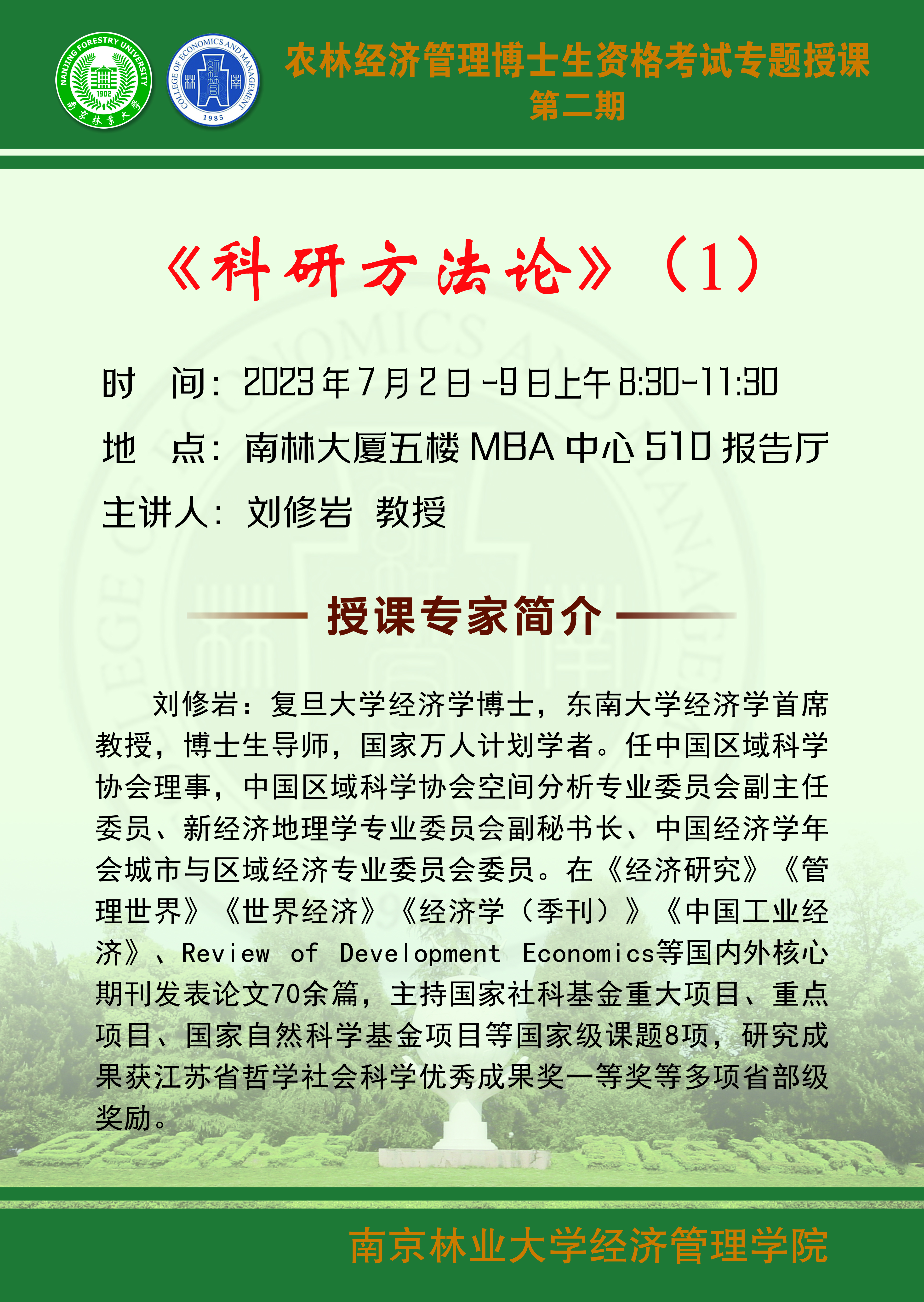 第二期博士资格考试暑期专题课程:《科研方法论》