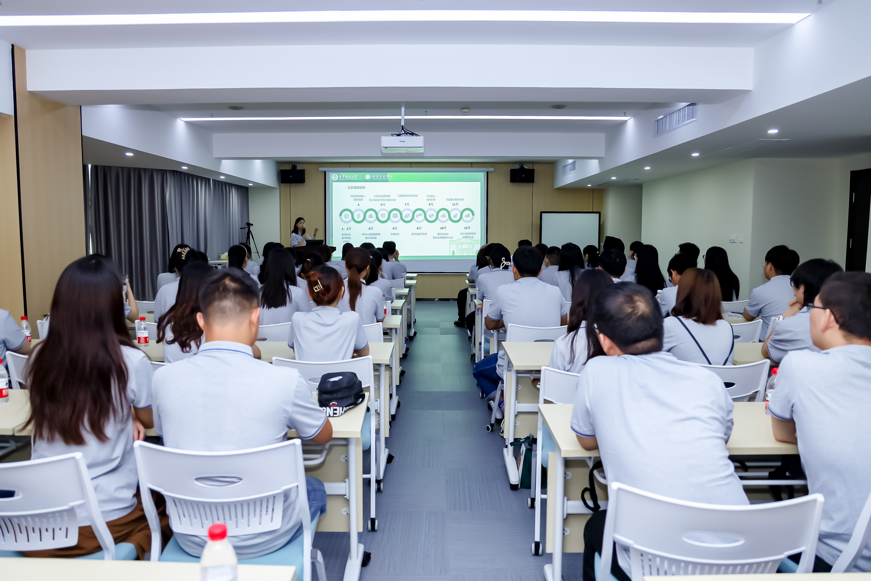 专业学位办公室沈弋主任为同学们讲解了南林专业学位硕士培养规划和课程设置,重点介绍了优势培养方向——绿色管理。MBA中心姚彦主任为同学们介绍了案例比赛和品牌活动,如MBA校园案例赛、亚太地区商学院沙漠挑战赛等。结合南林特色优势学科,通过组织丰富多彩的学生活动,培养学生的团队精神、创新意识和实践能力。