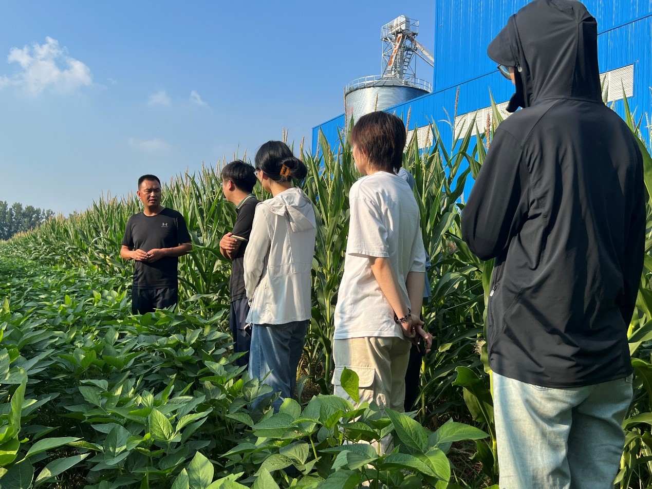 在石楼村的调研中,村书记为大家详细介绍了近几年正在推行的一种农业生产托管模式(联耕联种联储)。“联耕联种”将原来的“一户多田”和“零散种田”变为现在的“一田多户、连片种植”。在生产过程中实行统一耕种、统一管理、收益均分,显著促进小农户增收,有效带动小农户融入现代农业生产中。同时,调研队还深入田间地头实地观摩了大豆玉米带状复合种植的相关情况,详细了解了复合种植在除草和机械化收割等环节面临的难题,并收集了大豆玉米带状复合种植的成本收益数据。