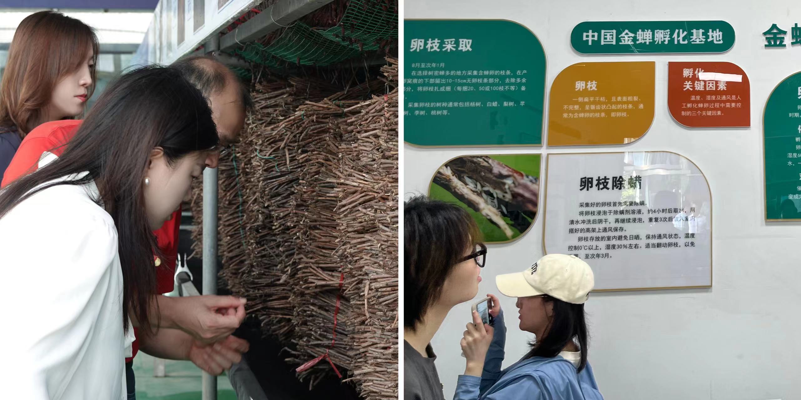 镇党委委员、副镇长梁振向队员们分享道:“根据目前的金蝉养殖技术,亩产金蝉达到2万多只,每亩收入超2万元,金蝉养殖成了农民的致富产业。不仅如此,在金蝉产销旺季,对捕捉、订单打包等短期雇工需求量激增,每年可带动2000余人灵活就业。”