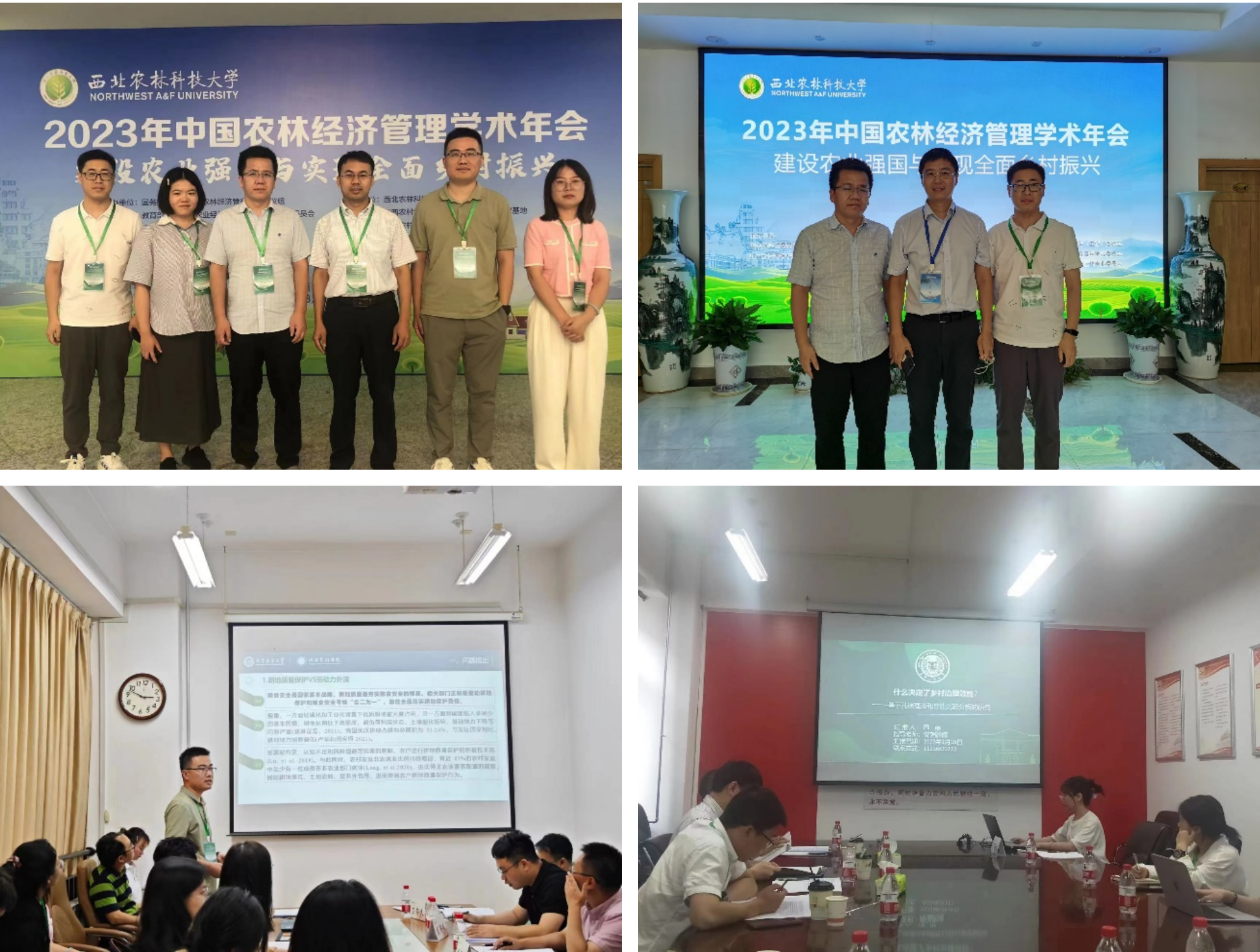 高强教授作为嘉宾出席开幕式,主持“耕地保护A”分论坛报告,并与中国人民大学钟真教授共同发起“农业组织与制度创新”专场报告;杨爱军教授和丁振民副教授在会场拜访了西北农林科技大学经济管理学院副院长张寒和西南林业大学经济管理学院副院长李娅等优秀校友;宁卓副教授参加了“乡村振兴与林业高质量发展”专场报告,并分享了《基于博弈论的木制林产品双边贸易和边境碳调节研究》最新研究成果;程长明和周丽两位博士生分别汇报了《非农就业、服务外包与农户耕地质量保护》《多因素联动对中国乡村治理效能驱动机制研究》等论文,得到了与会专家的认可。