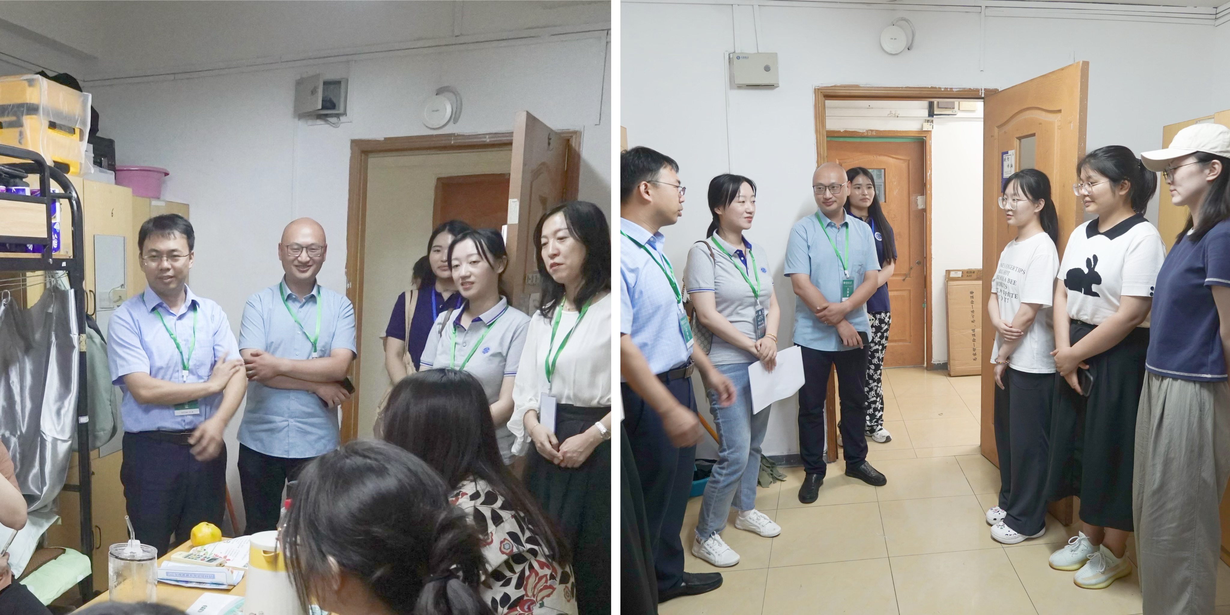 9月3日晚,学院党委书记高强、党委副书记李倩、副院长邓德强、研究生辅导员谢冰清一行前往我院新生宿舍开展全覆盖走访工作,院领导们对研究生新生们表示欢迎和祝贺,并和同学们进行了细致入微的交谈,了解研究生新生们的学习生活、专业方向、心理调适等基本情况,为新生们细致地答疑解惑,传递温暖。