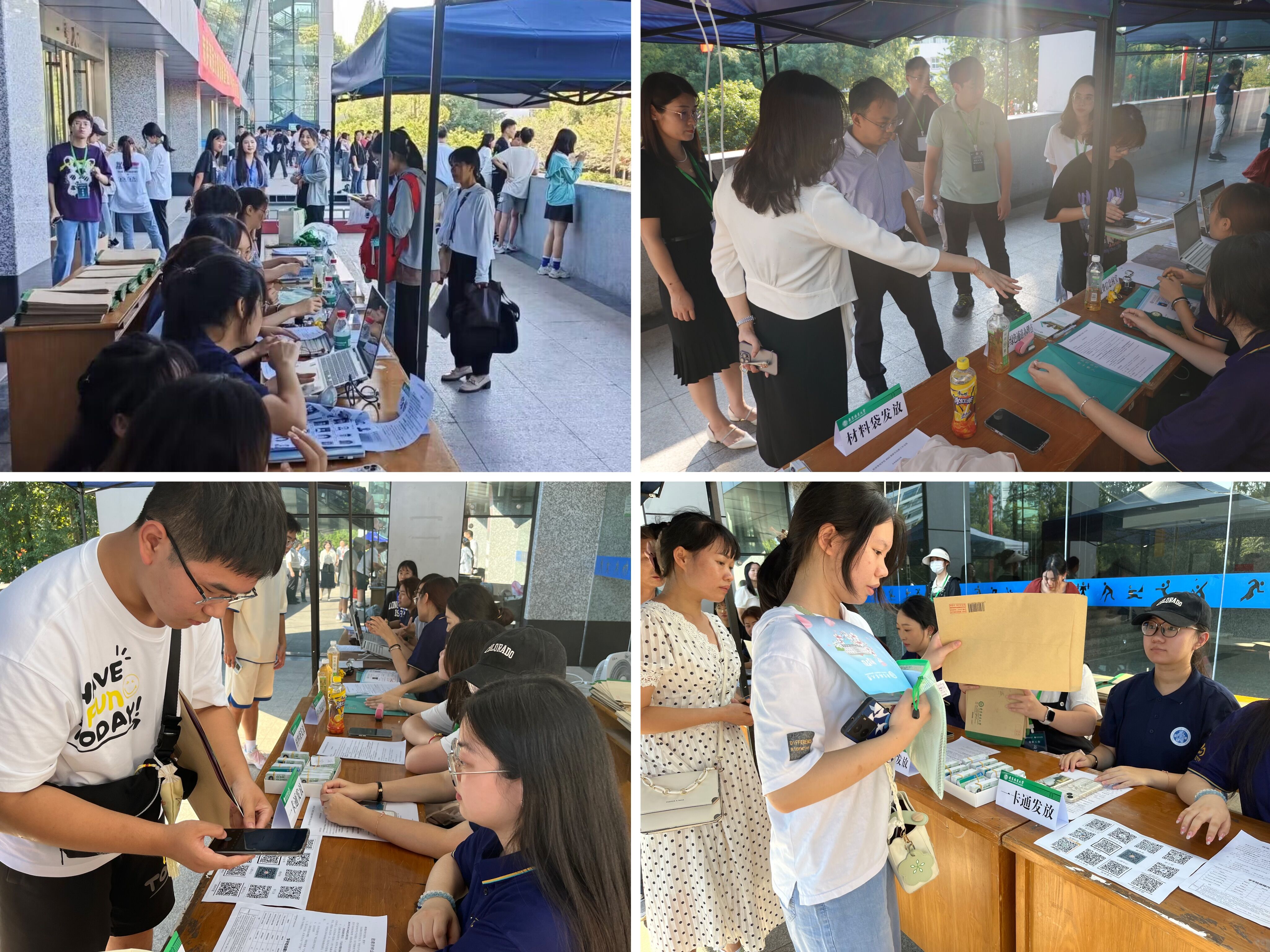9月1日8:00,随着第一位新生的到来,学院迎新工作正式拉开帷幕。新生在报道工作台完成身份认证、缴费信息核实、材料袋和一卡通领取等一系列步骤,并与家长在红色纪念展板前留下美好的瞬间。志愿者们配合默契的“流水线作业”,推动着迎新工作高效有序地开展。
