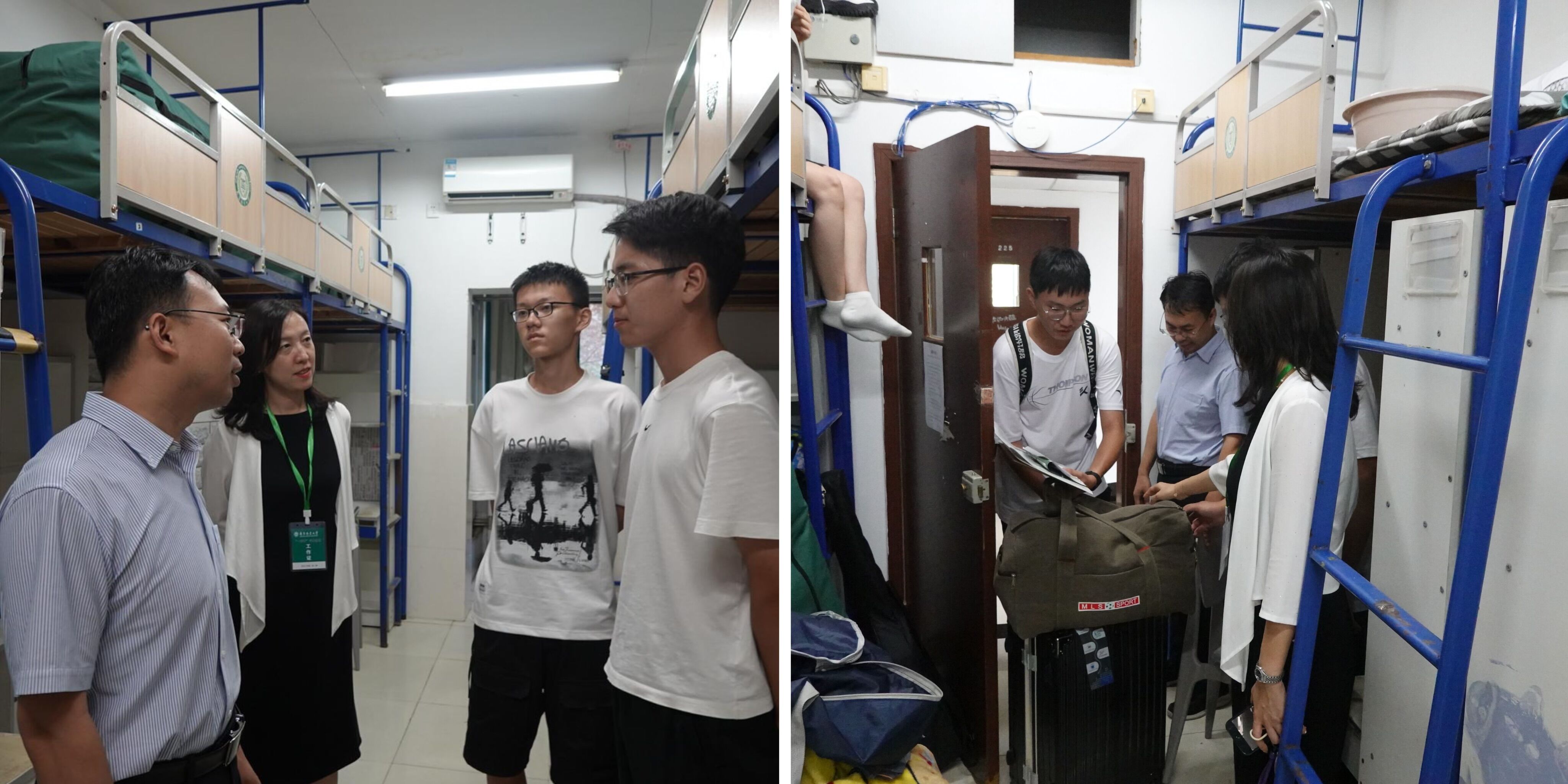 9月1日晚,我院党委书记高强、党委副书记李倩在本科生辅导员们的陪同下,深入宿舍,走访看望2023级新生,并与学生家长进行了亲切交流。高强书记耐心地解答了家长关于学科建设、专业发展的疑问,提出家校共建的殷切期望,李倩副书记鼓励新生要尽快融入校园和集体,惜取少年时光、把握眼前机遇。