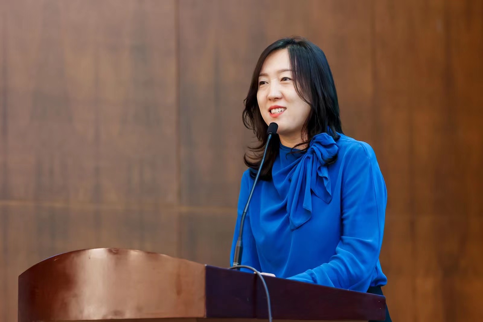 李书记代表学院师生员工对研究生新同学的到来表示热烈欢迎。她表示,新的起点、新的征程、新的出发,全体研究生应该“做好规划”、“享受学习”、“学会结合”、“善于沟通”,并鼓励在场新生们苦练本领、汲取前行力量;突破边际、尝试多种可能;脚踏实地,不负青春韶华。
