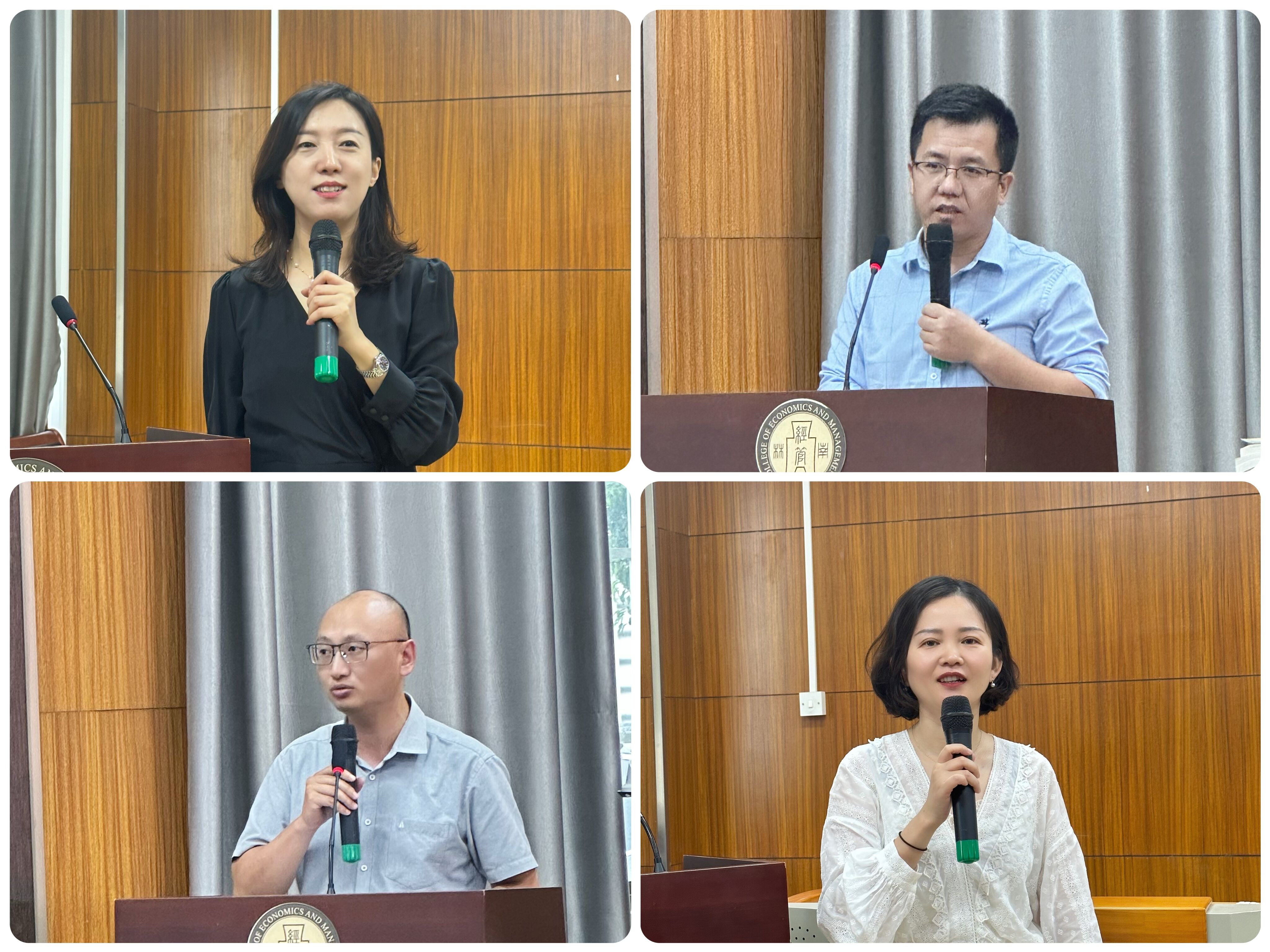 会上,8位新入职教职工杜运苏教授、刘佳伟副教授、剌利青博士,辅导员王蔚然老师,MBA/MPACC中心刘一凡、田岱沂、范茜、毛峰老师分别作自我介绍,并表达了对教育事业的热爱、努力教书育人的态度以及勇于挑战的坚决信心。