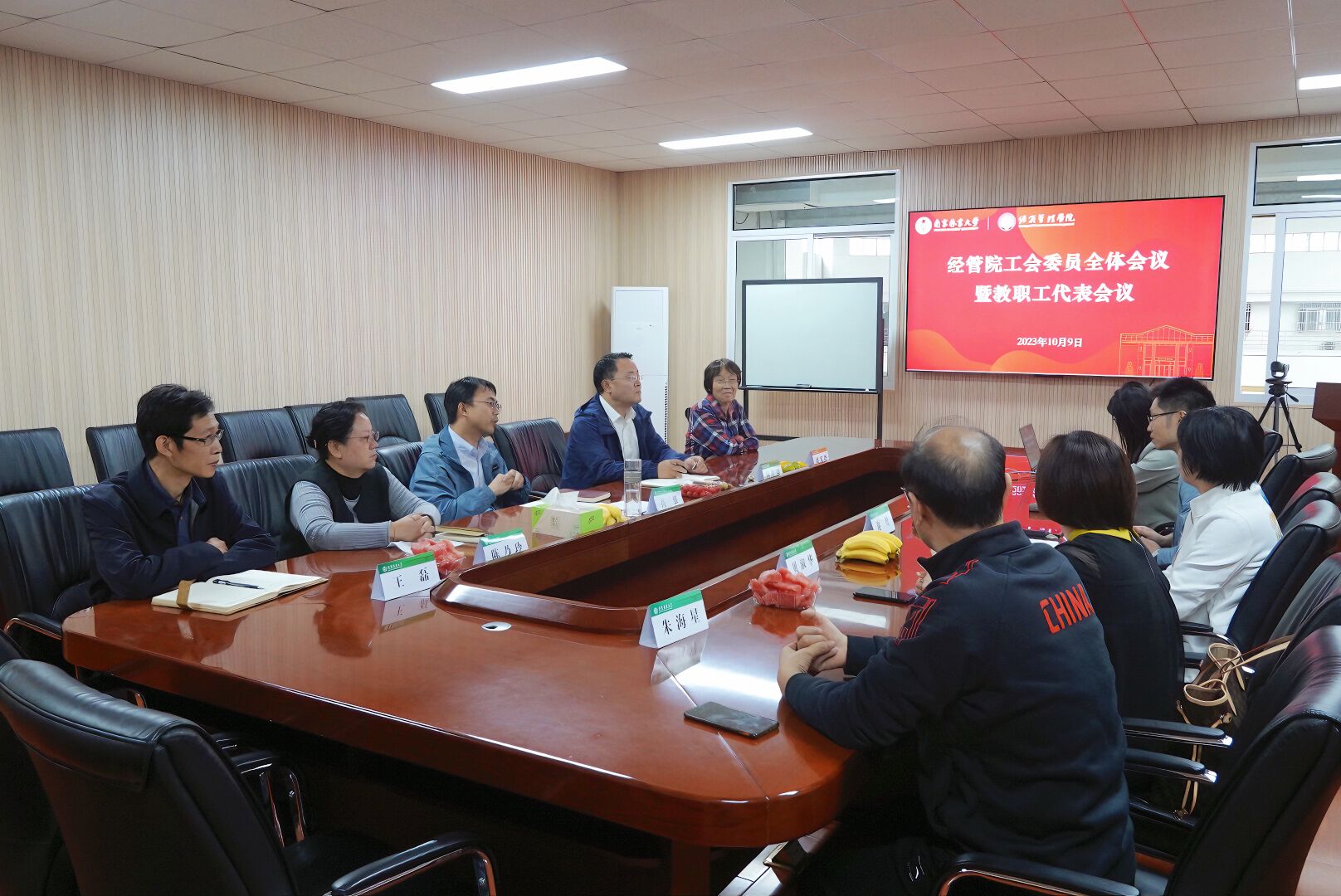 2023年10月9日上午,经济管理学院工会委员会全体会议暨教职工代表会议在C208会议室顺利召开。会议由学院党委书记高强主持,院长杨红强、办公室主任陈乃玲、工会主席潘家坪,各系、部门工会小组长参加此次会议。