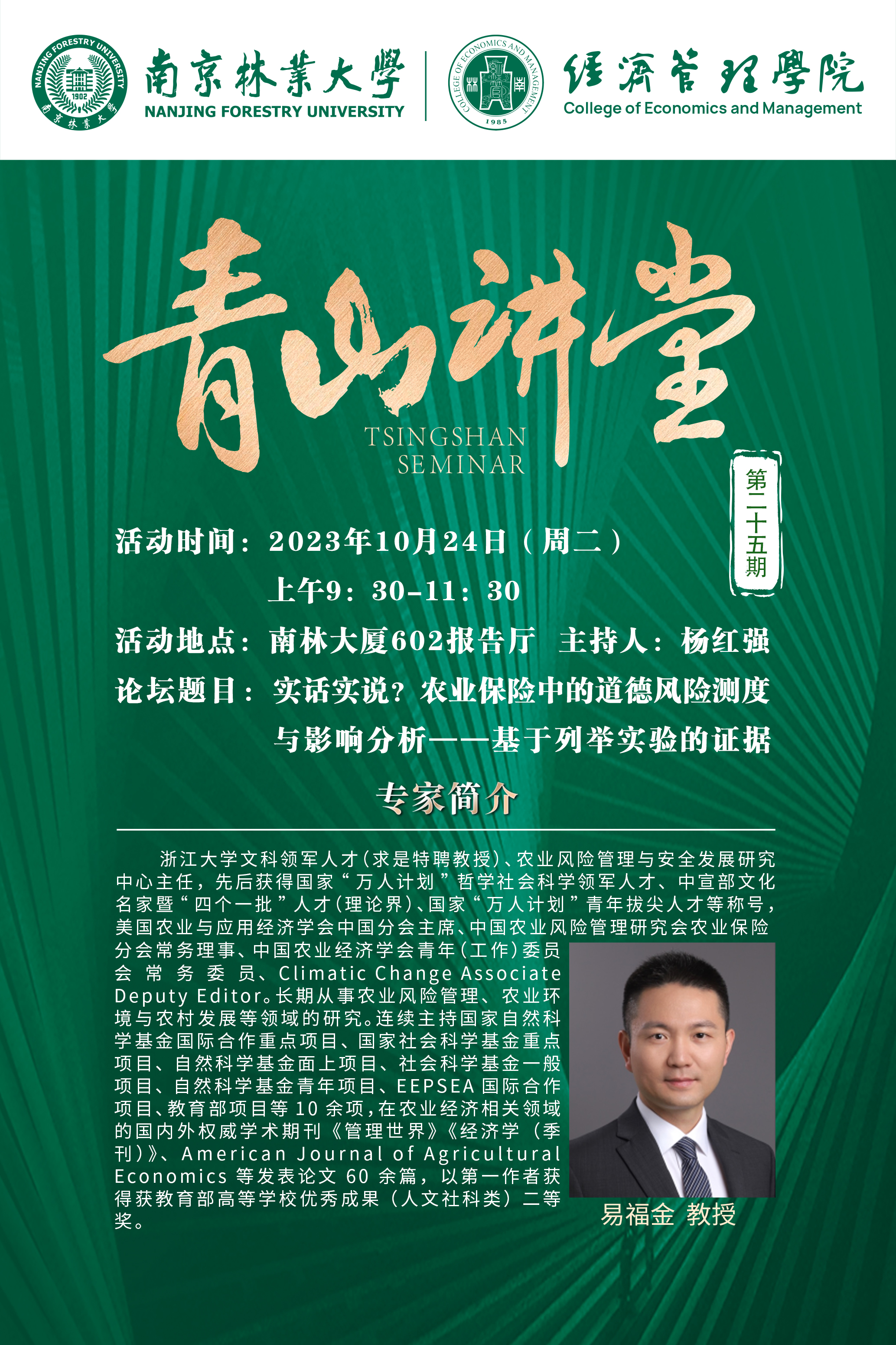 青山讲堂 第二十五期:易福金 教授(浙江大学)