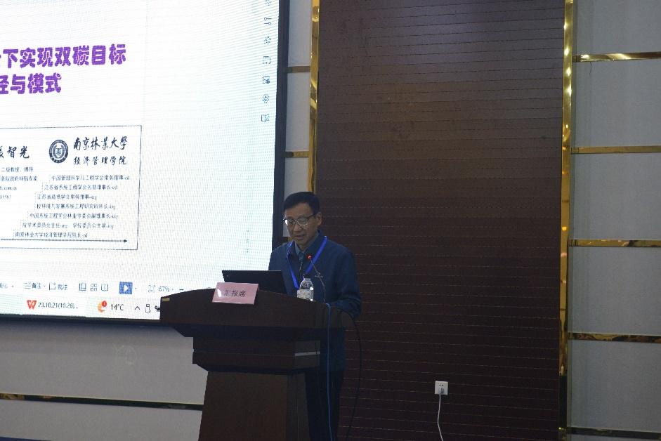 张智光教授做了题为“生态文明背景下实现双碳目标的途径与模式”的大会特邀主题报告。参会研究生代表做了5场分会场学术报告。本次学术年会对所有参会论文组织专家进行了评选。张文瑞荣获优秀论文一等奖、余红红、卑燕获优秀论文二等奖,张雨桐、李苏婉获优秀论文三等奖。