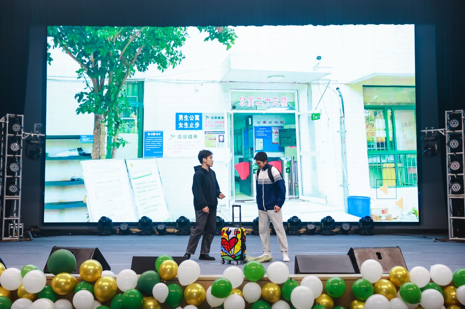 晚会走向尾声,辅导员老师们走上舞台。心中有梦,相信彩虹,尽管前路漫长,但他们已做好准备,与你一同前往。