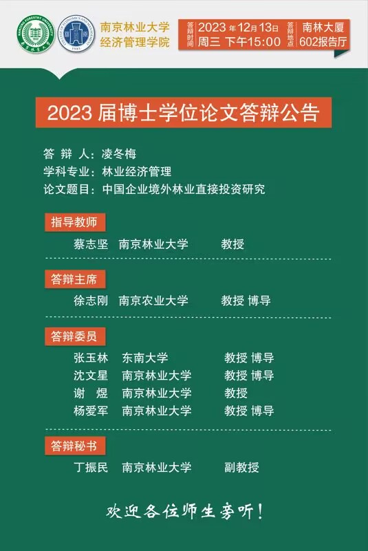 2023届博士学位论文答辩:潘文琦 凌冬梅