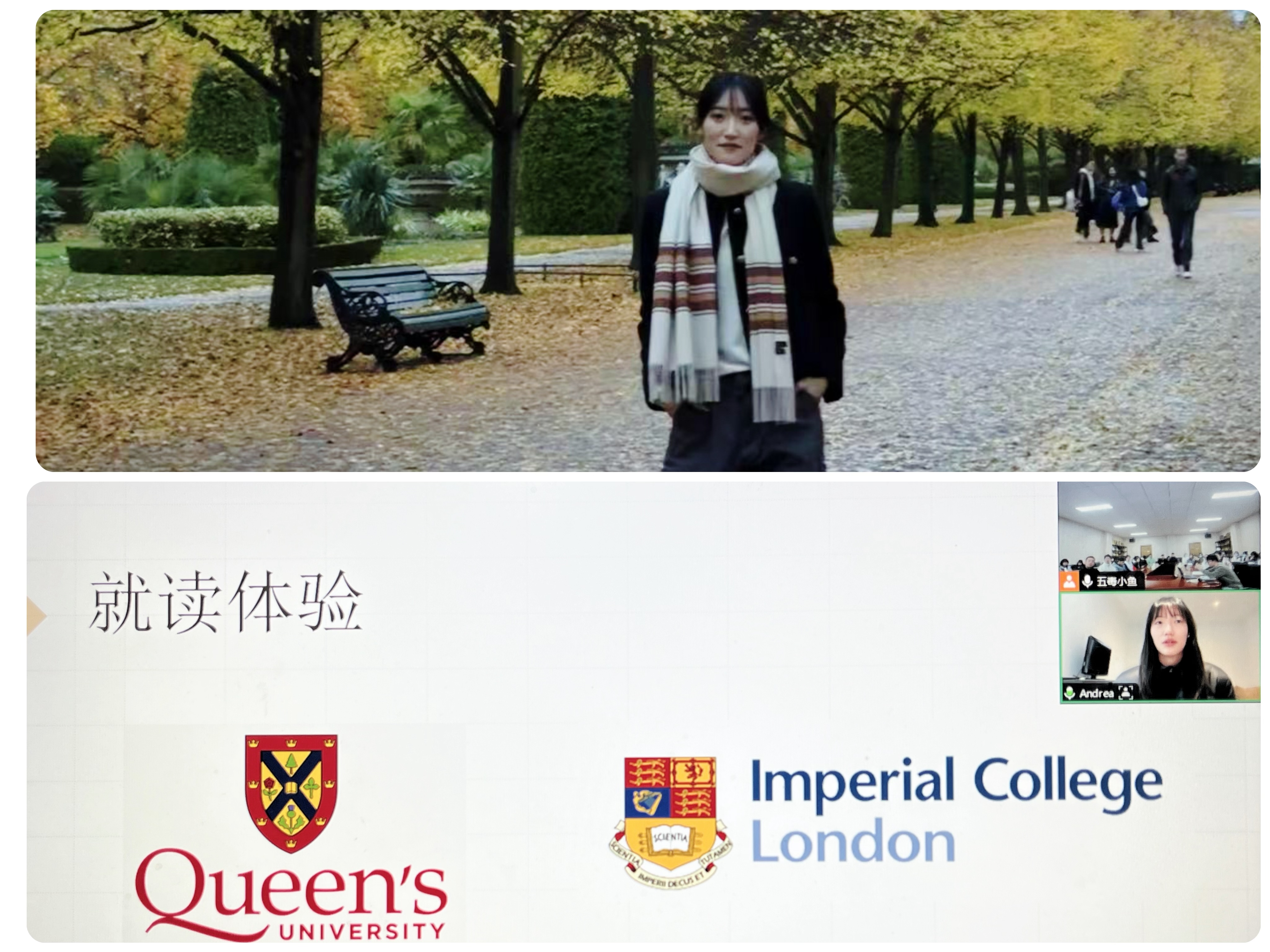 为助力PFUT项目学员树立国际化视野,科学规划未来,我院于12月16日下午18:30在文科楼C208会议室举办“加拿大和英国学习氛围差异及学习体验”主题分享讲座。此次讲座特邀英国伦敦帝国理工学院聂安朱学姐作为主讲人,PFUT项目负责老师齐蓓、项目二期学员和2023级部分同学参加了本次讲座。