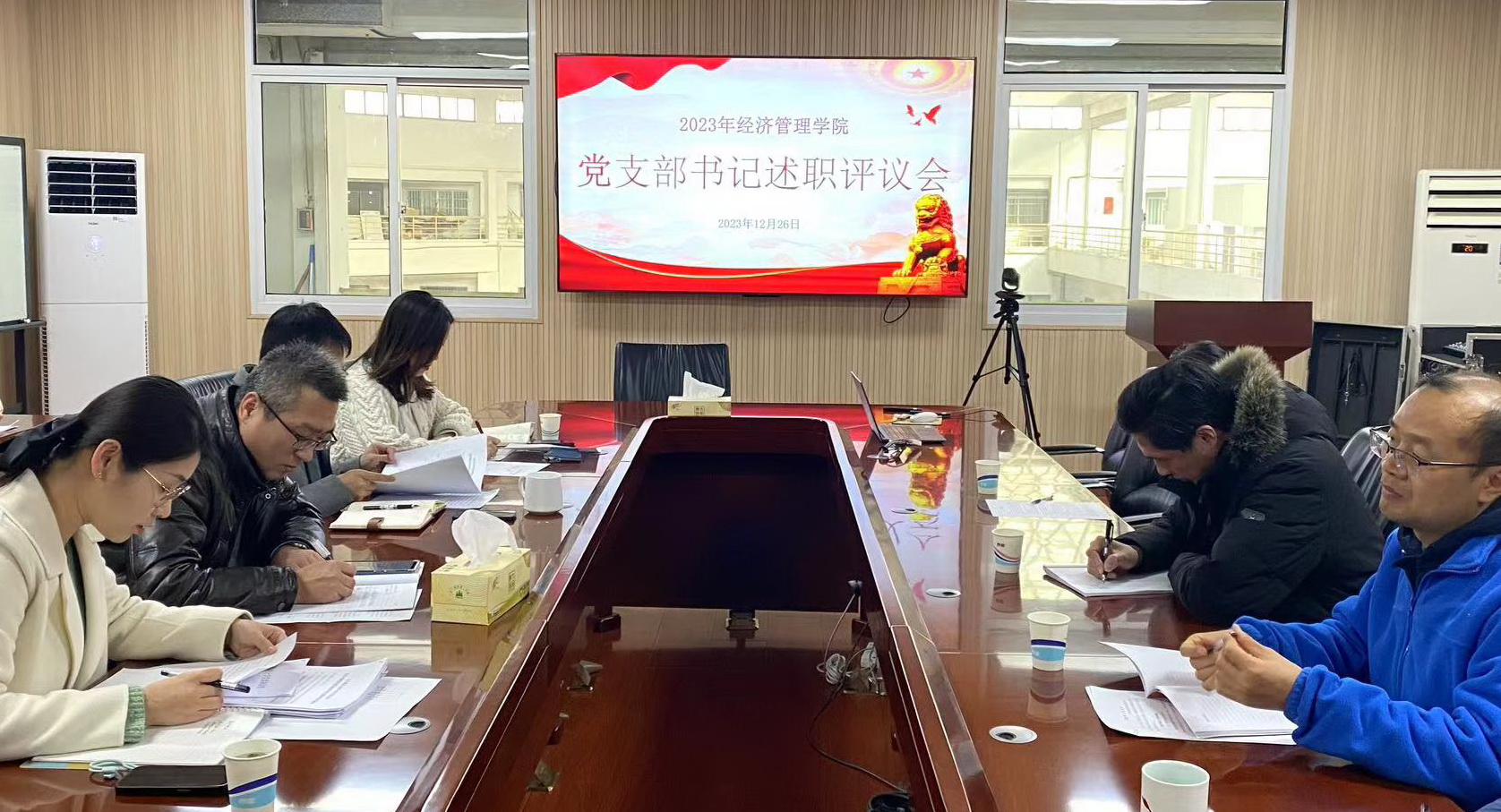 为加强经济管理学院基层党组织建设,推动全面从严治党向基层延伸,结合我院党委工作实际,12月26日下午,经济管理学院党委2023年度党支部书记述职会于文科楼C208召开。学院党委书记高强、党委副书记副院长李倩、党委委员邱强与各师生党支部书记共同出席会议。会议由学院党委组织员齐蓓主持。