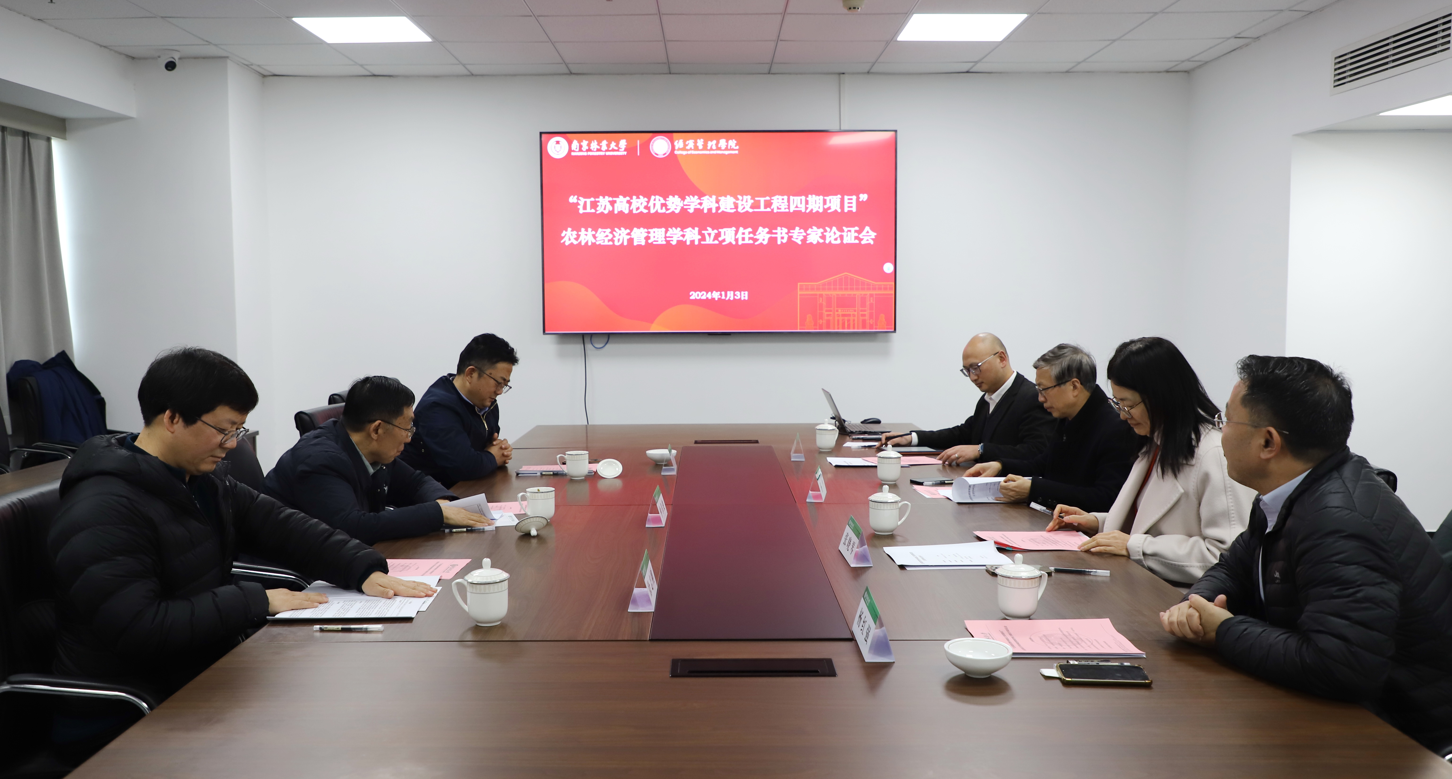 1月3日下午,我院在南林大厦MBA中心602罗莱报告厅召开“江苏高校优势学科建设工程四期项目”农林经济管理学科立项任务书专家论证会。会议特邀江苏省管理学类研究生教学指导委员会主任、东南大学仲伟俊教授,江苏省管理学类研究生教学指导委员会委员、南京航空航天大学周德群教授,南京农业大学经济管理学院院长徐志刚教授,南京林业大学副校长张晓琴研究员,中国学位与研究生教育学会农林工作委员会副主任、南京林业大学杨平教授参会研讨论证。会议由杨红强院长主持。