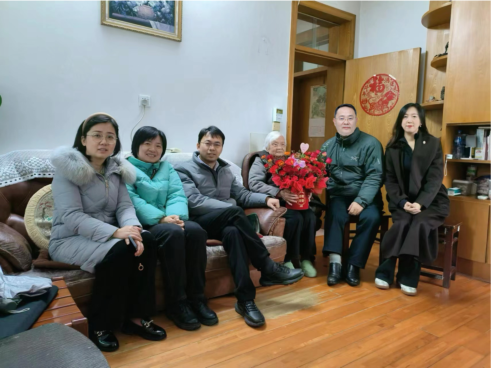 又是一年佳节至,最是岁寒情暖时。在2024年新春佳节即将到来之际,学院党委书记高强、院长杨红强、党委副书记李倩、院工会主席谢煜、院办公室主任王红霞及院工会前主席潘家坪一行6人走访慰问了荣佩珠教授、陈国梁教授、马天乐教授和高振华教授等离退休老领导和老教授。