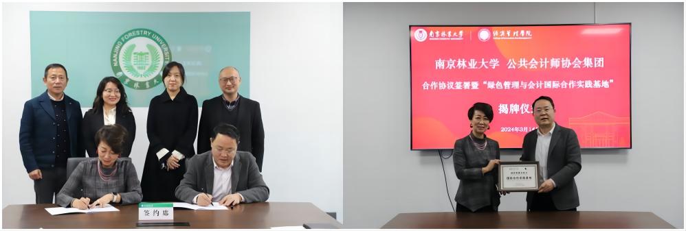 最后,双方共同签署合作协议,为“绿色管理与会计国际合作实践基地”进行揭牌,并合影留念。