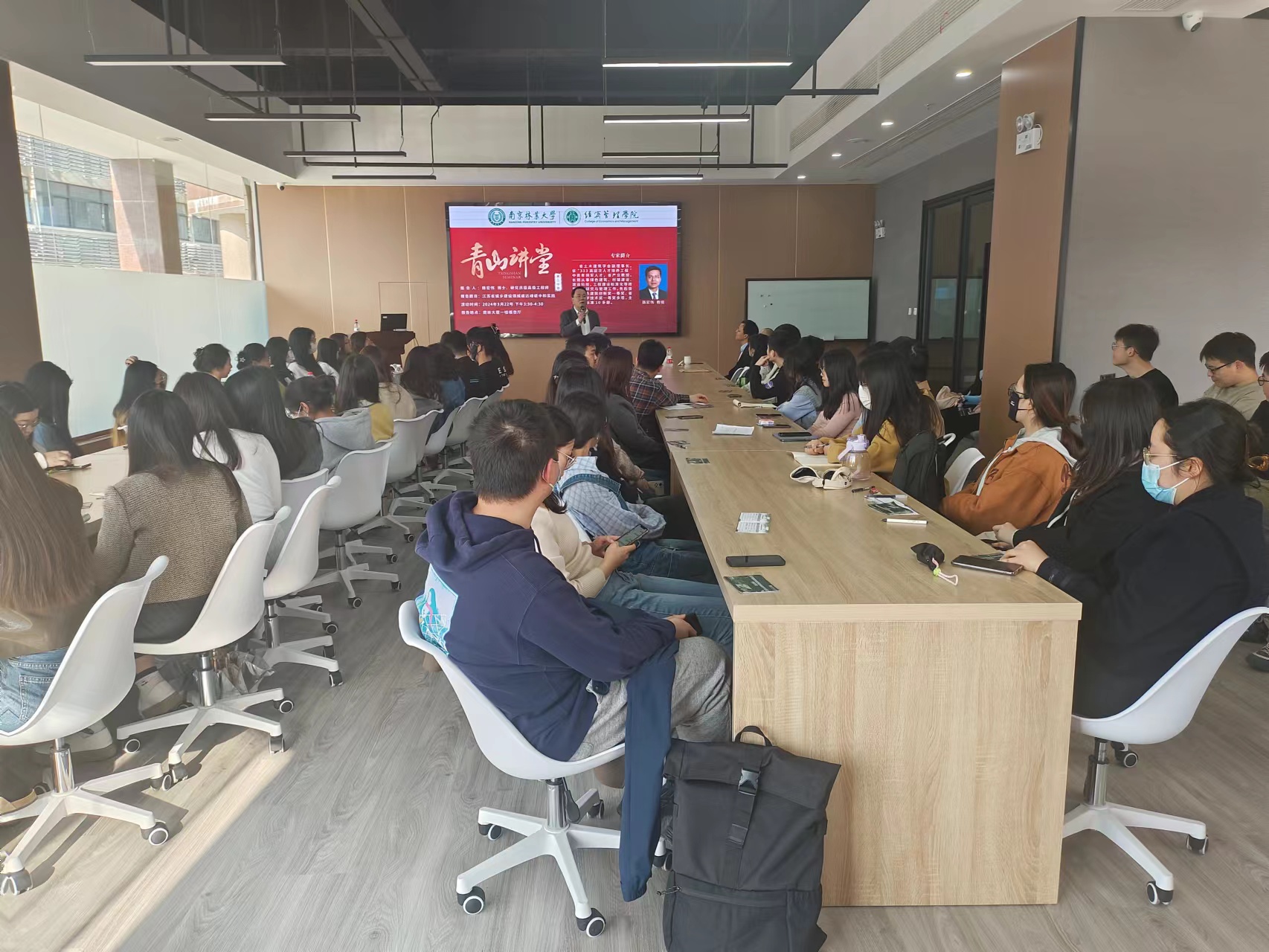 3月22日下午,省土木建筑学会副理事长、研究员级高级工程师路宏伟博士来我院调研交流,并在“青山讲堂”为我院师生分享了题为《江苏省城乡建设领域碳达峰碳中和实践》的专题报告。院长杨红强、副院长邓德强、相关学科教师以及会计、金融硕士研究生共80余人参加此次活动。讲座由杨红强院长主持。