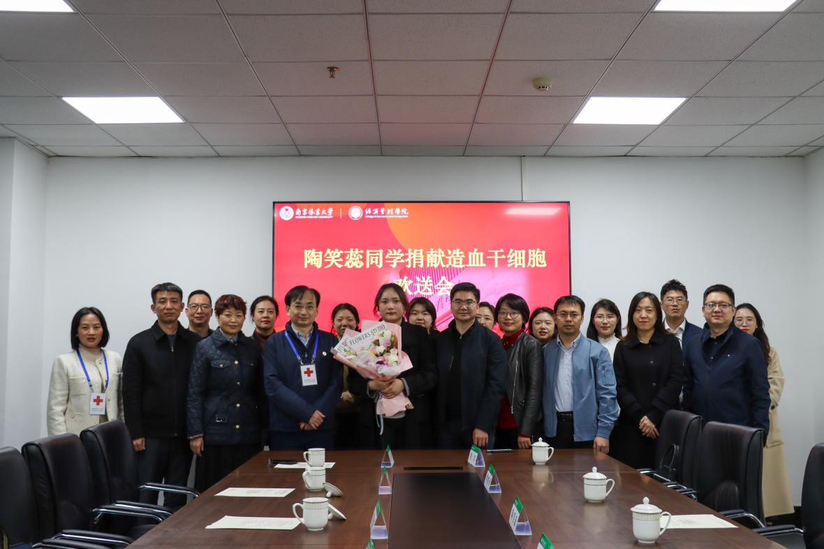欢送会上,我院党委书记高强表示,捐助者和被捐助者都是幸运的。造血干细胞捐献是一项挽救生命、传递爱心的公益活动。陶笑蕊同学以实际行动展现了我院学子在“热辣滚烫”的青春年华中奉献大爱、关爱他人的精神风貌。造血干细胞捐献不仅是对患者的救治,更是一种精神力量的传递,传递着青春热血、无私奉献的精神,为我们学院树立了良好的榜样。我院将以此为契机,鼓励更多的同学加入公益服务的队伍中,支持公益,奉献爱心,让爱的火种薪火相传!南京市红十字会捐献服务部部长刘文华表示,南京林业大学与南京市红十字会合作紧密,关系融洽。南林校园里的爱心氛围浓厚,截至目前,已有3位同学成功完成造血干细胞捐献,陶笑蕊同学接过“捐献火炬”,即将是奉献大爱的第4位同学。他表示,在这樱花盛开的美丽校园中,恰逢陶笑蕊同学捐献仪式这件美丽的事情,希望以此次活动为契机,宣传、带动更多的老师和同学们关注红十字事业,关注人道主义事业。同时,他代表受助者本人和家属对陶笑蕊同学无私奉献的精神和行为表示由衷的感谢。