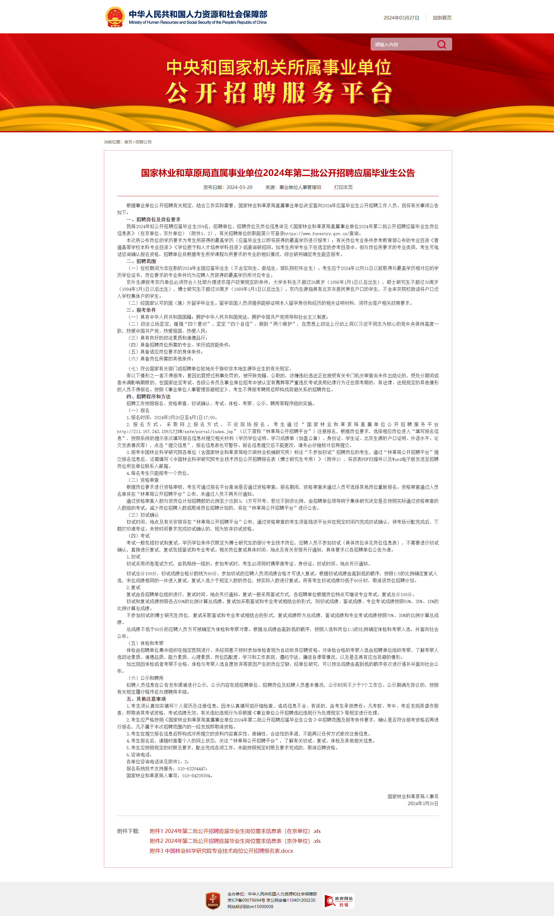 2024年应届毕业生招聘第二批公告已在人社部官网发布,http://www.mohrss.gov.cn/SYrlzyhshbzb/fwyd/SYkaoshizhaopin/zyhgjjgsydwgkzp/zpgg/202403/t20240320_515227.html ,报名时间为3月20日至4月1日17:00。