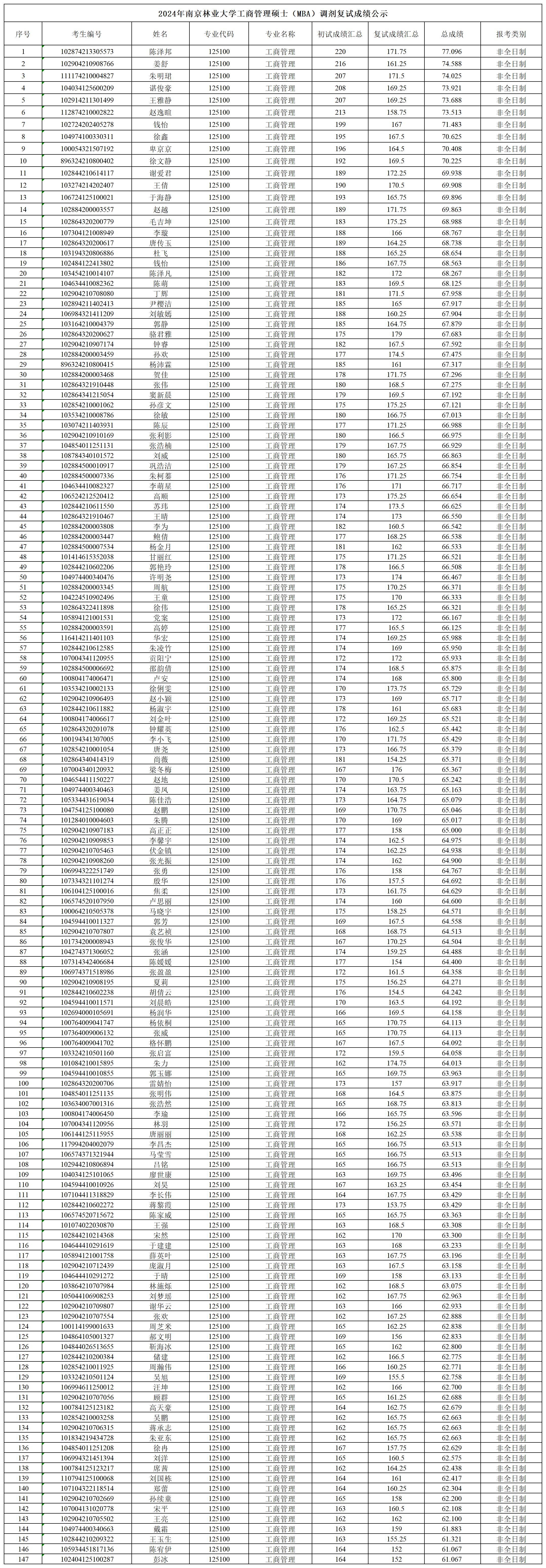 2024年南京林业大学工商管理硕士(MBA)调剂复试成绩公示