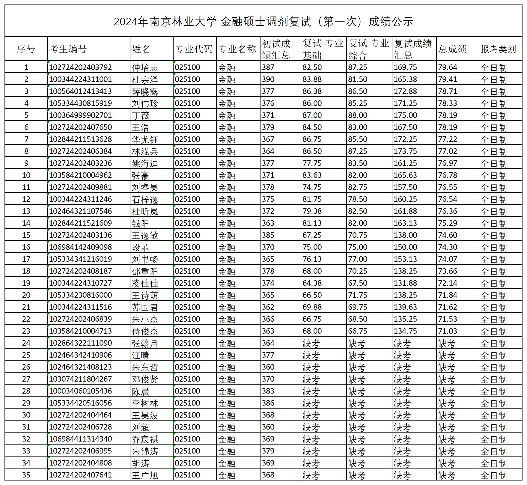 2024年经管院金融专硕调剂复试(第一次)成绩公示