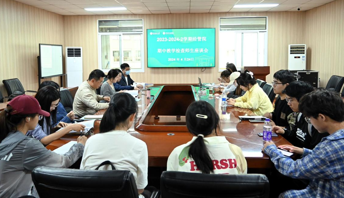 进一步加强本科教育教学过程的动态管理和调控,提高教师教学能力和学生学习效果,完善健全教学管理制度, 424日下午,我院在院C208会议室召开2023-2024学年第二学期本科期中教学检查座谈会。教学院长张玲、各系主任以及2023级本部学生代表们参加了会议。