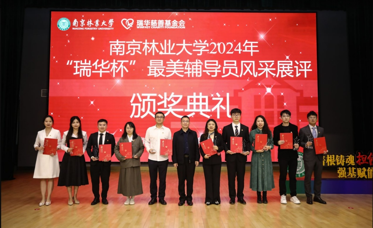 4月17日下午,南京林业大学“瑞华杯”最美辅导员风采展评暨颁奖典礼在新庄校区大学生活动中心兔宝宝剧场隆重举行。本次大赛经辅导员自主报名,学校初评,学校复评,现场风采展示及网络投票,最终,我院辅导员赵淑颖、肖肖老师脱颖而出,荣获2024年南京林业大学“瑞华杯”最美辅导员称号。