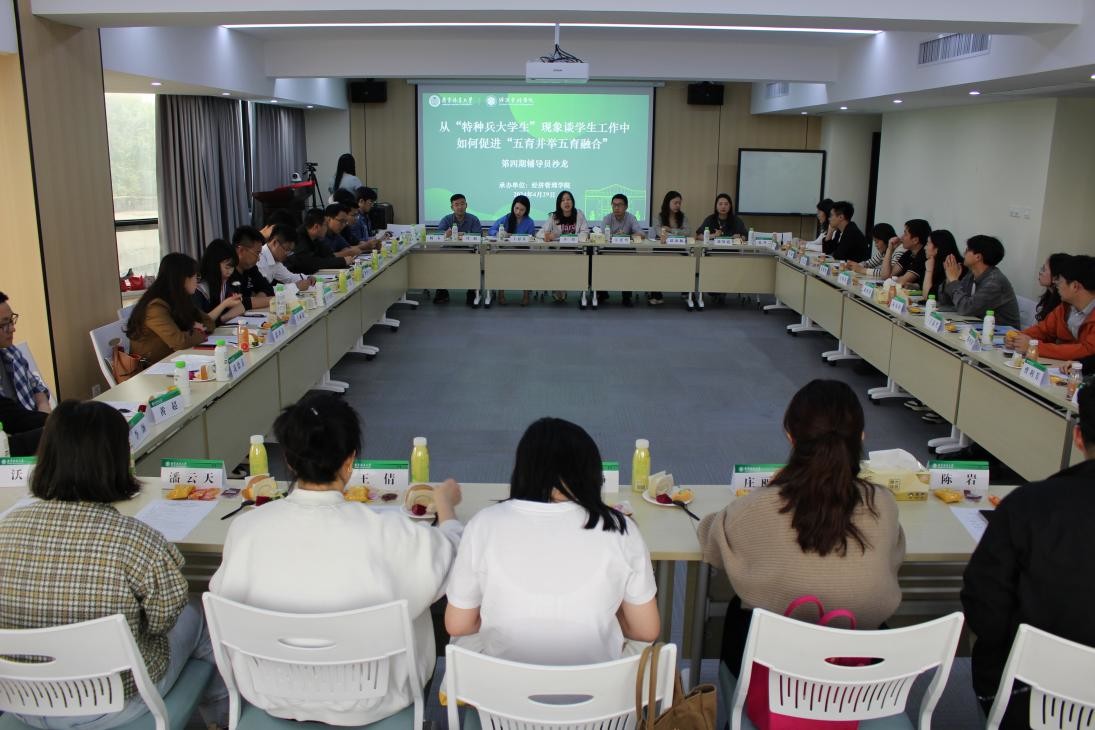 随着“特种兵大学生”现象的兴起,各大高校纷纷关注并探讨如何在新时代背景下更好地培养学生的综合素质。为满足“特种兵大学生”现象所反映出的当代大学生对于德智体美劳五育的多元需求和渴望,共同探讨在“特种兵大学生”现象下如何实施“五育并举五育融合”的教育模式,促进学生全面发展,4月29日下午,南京林业大学第四期辅导员工作沙龙在南林大厦510教室举行。创新创业实践教育中心主任金建州以及各学院40余位辅导员参加本期沙龙。本期沙龙由经济管理学院党委副书记、副院长李倩主持。