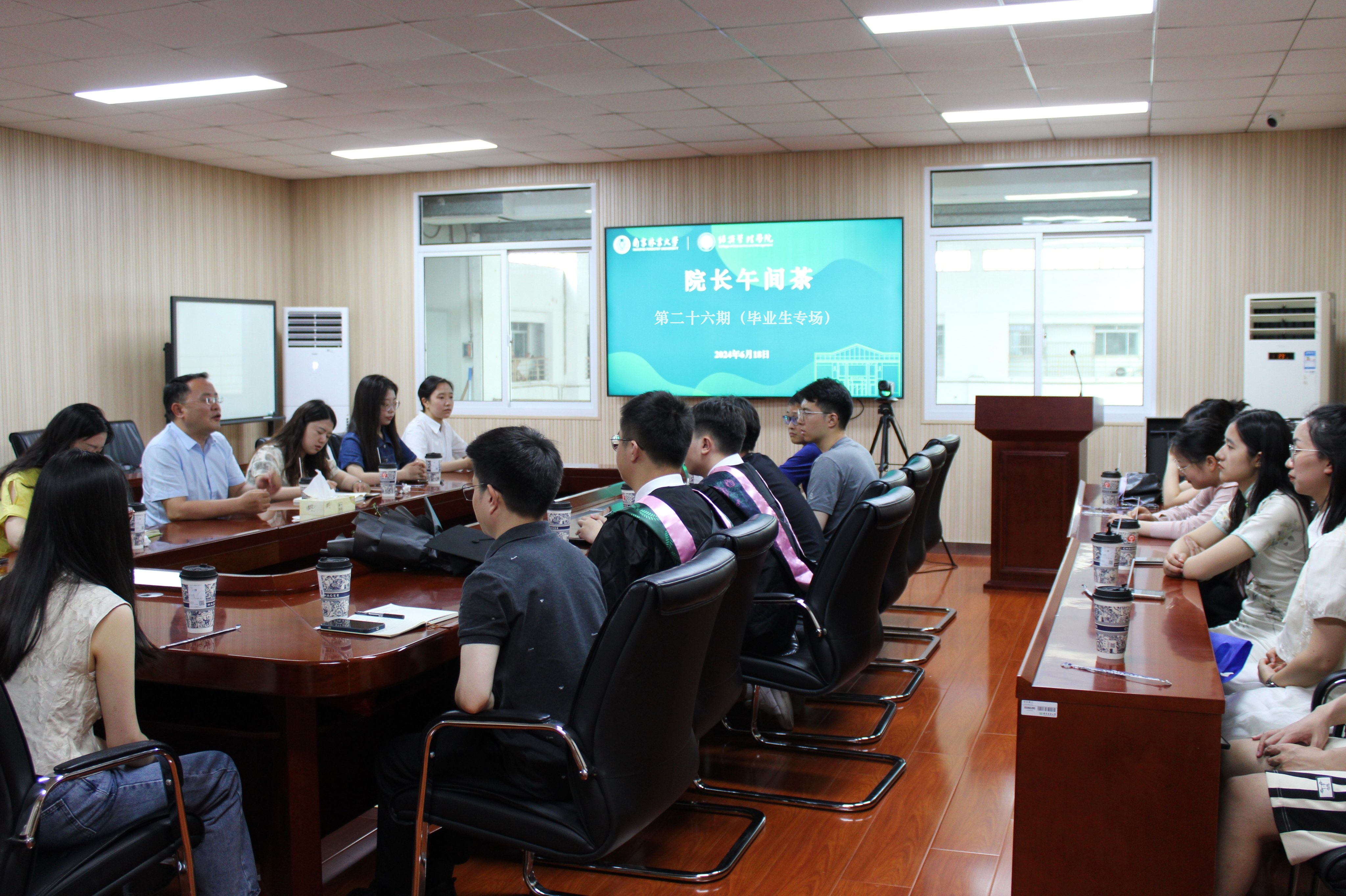 6月18日中午,第二十六期“院长午间茶”(毕业生专场)活动在文科楼C208成功举行。经济管理学院院长杨红强与2024届本硕博优秀毕业生代表共聚一堂,为即将踏上人生新征途的同学们送上深情的寄语和诚挚的祝福。学院团委书记、学工办主任赵淑颖老师,研究生辅导员谢冰清老师,本科生辅导员陈鸣晖老师出席活动。本次活动由赵淑颖老师主持。