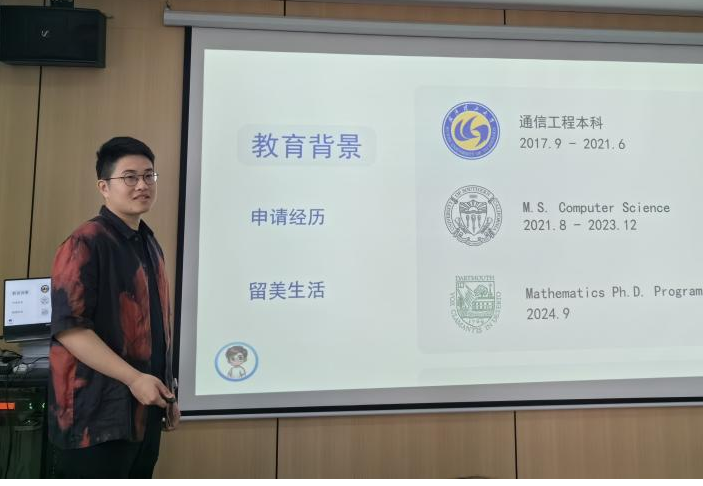 随后,魏驰宇从自身教育背景出发,分享了自己对于留学所做的规划和准备,并告诉同学们结合目标院校校情和自身基础,做好发展规划是十分重要的。他强调在制定和落实留学规划时一定要踏实努力,提升强化自己的标化成绩和申请文书。同时,魏驰宇讲述了自己的留学、申博经历,向大家介绍了如何适应和融入新的文化、新的集体,他建议大家一定要提前培养独立生活能力和学习科研能力。同学们通过学长的真实事例感受到了宝贵机会是留给有准备的人,也是靠自己的努力争取来的。