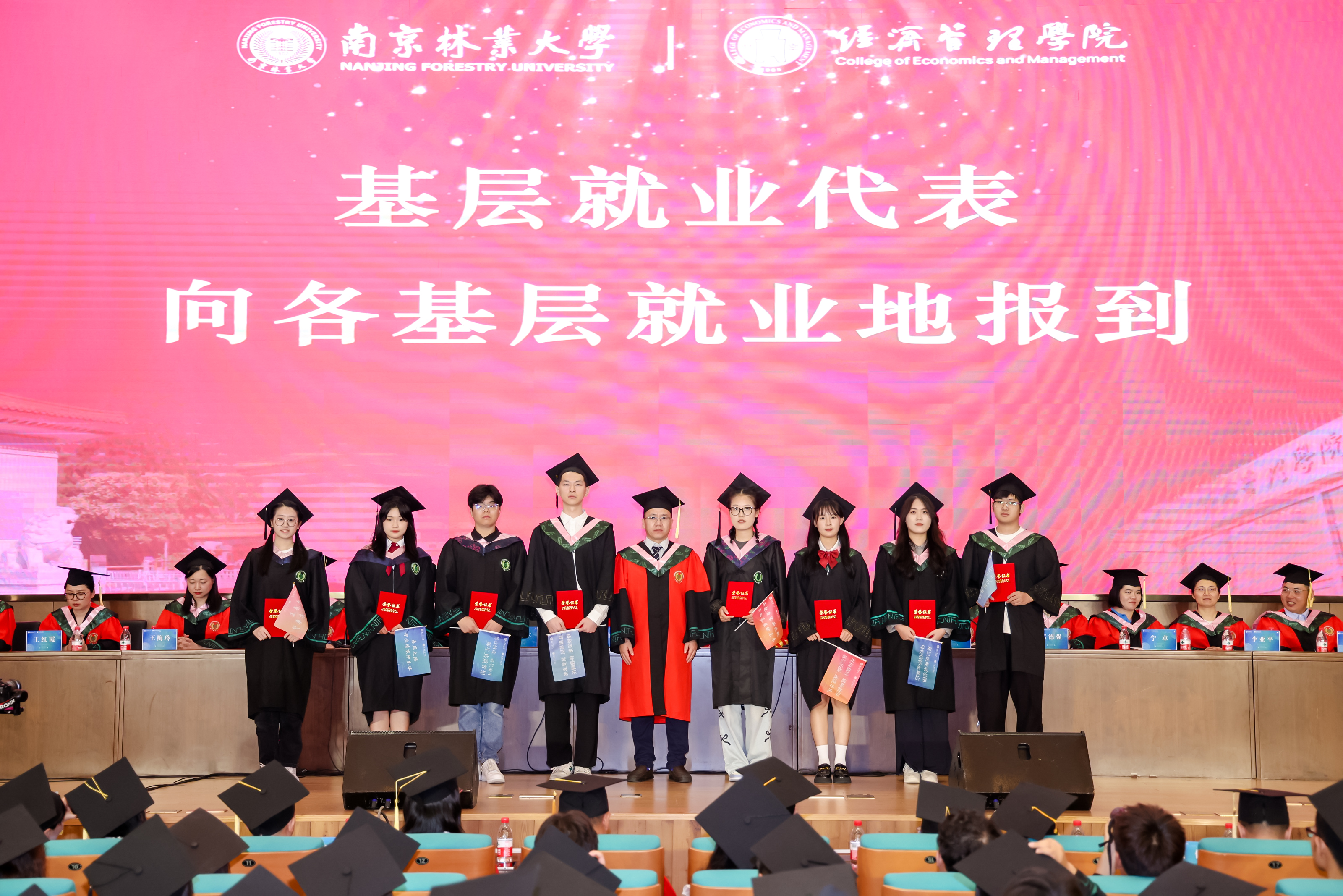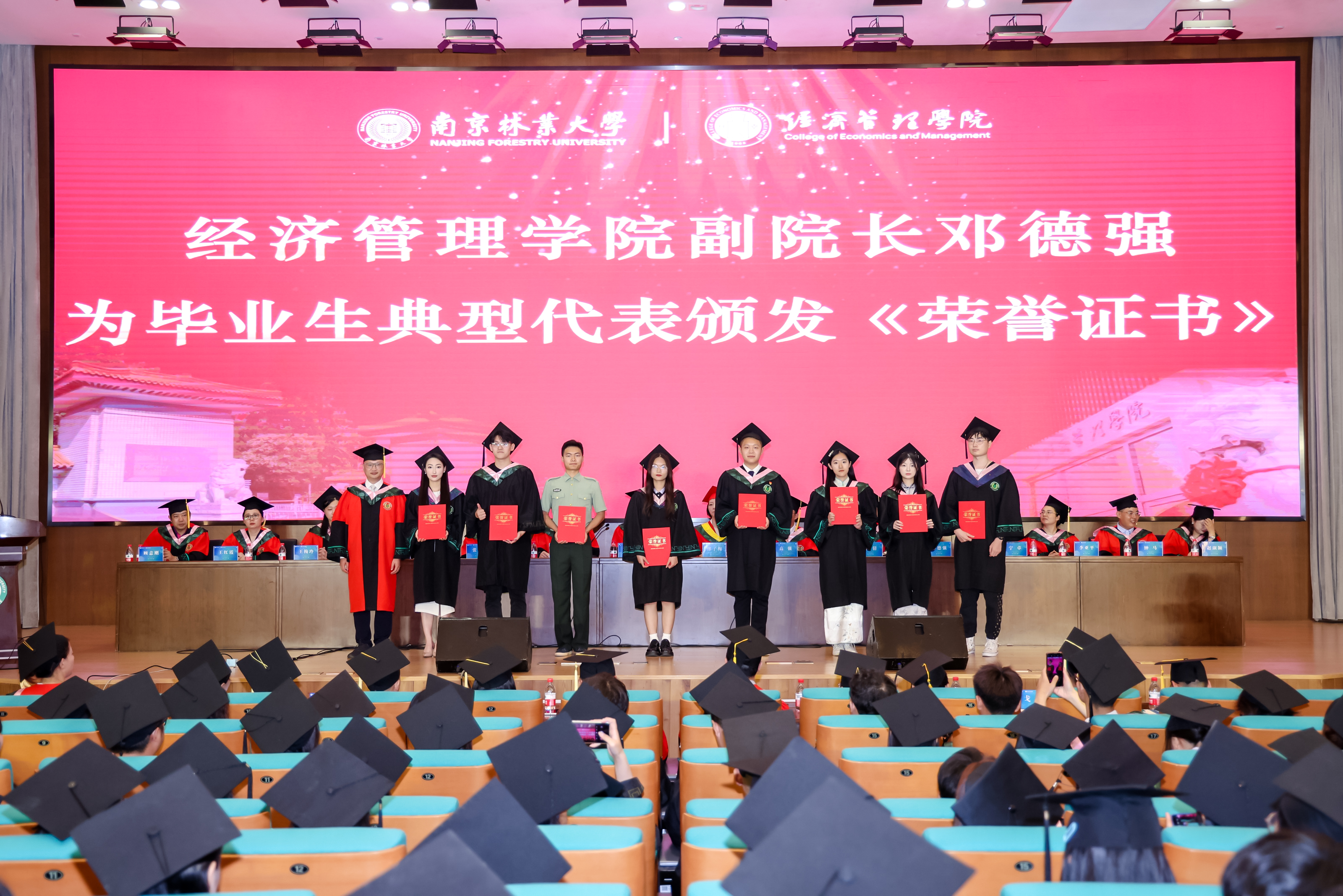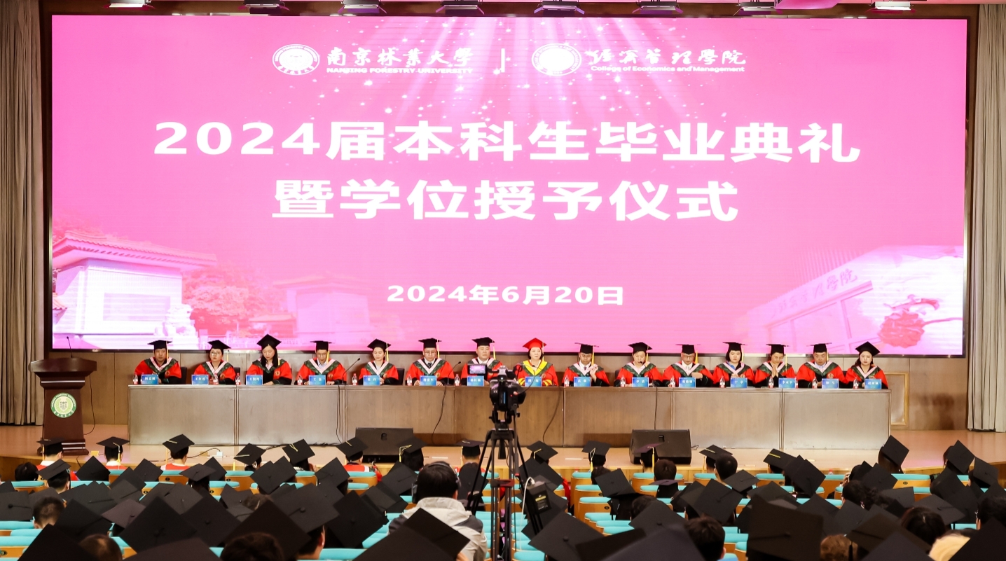 6月20日,南京林业大学经济管理学院2024届本科生毕业典礼暨学位授予仪式在新图书馆圆满举行。南京林业大学党委常委、副校长缪子梅,经济管理学院党委书记高强,院长杨红强,党委副书记、副院长李倩,副院长杨爱军,副院长邓德强,副院长张玲,各系(室、中心)负责人,各年级辅导员,毕业班班主任,2024届全体本科毕业生及家长代表出席本次典礼。仪式由学院党委副书记、副院长李倩主持。