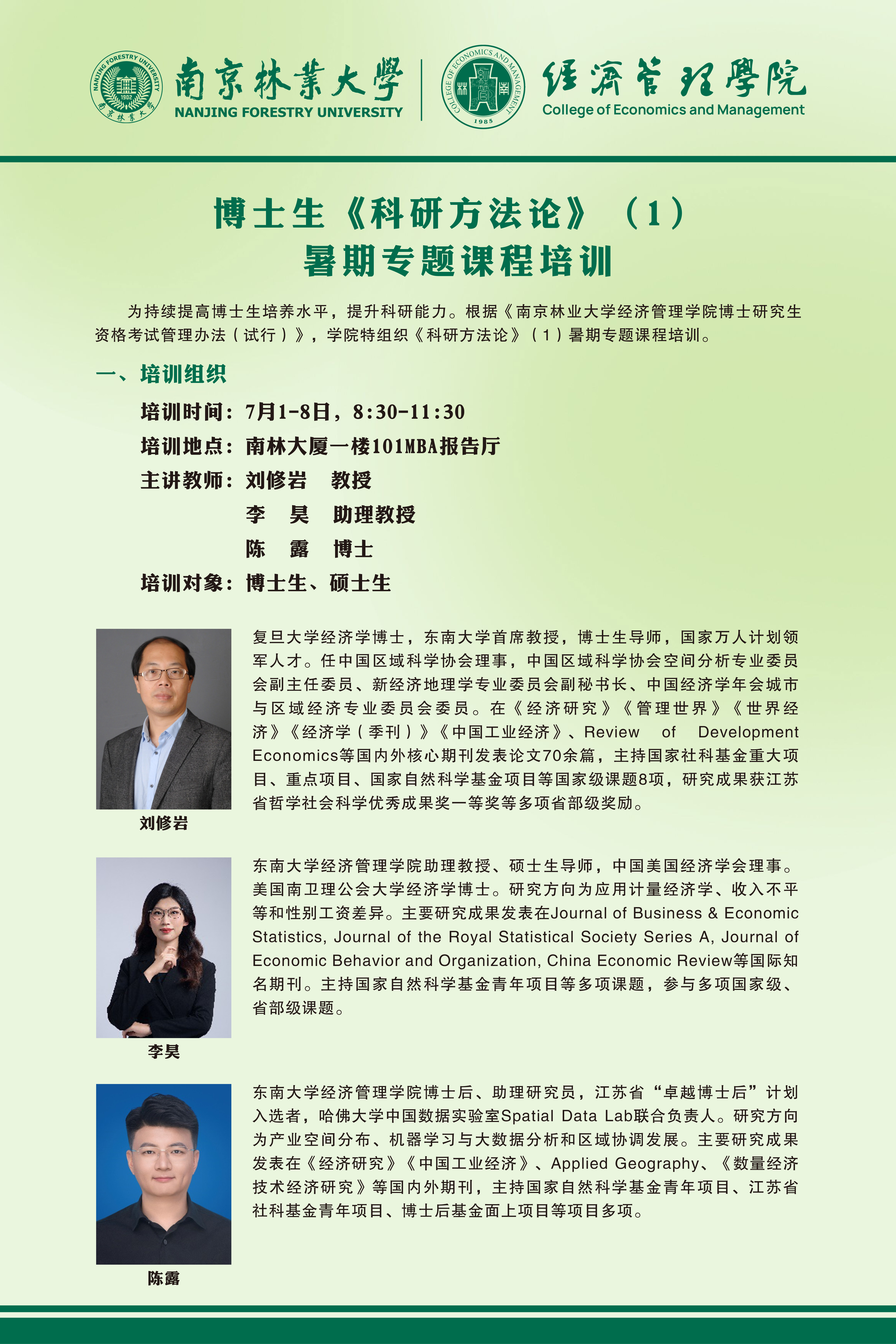 第三期博士资格考试暑期专题课程:《科研方法论》