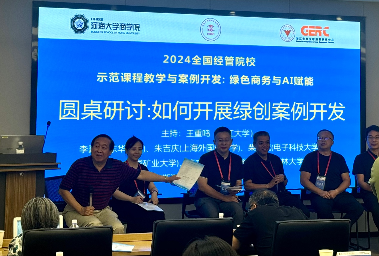 2024年8月15-17日,“2024全国经管院校示范课程教学与绿色案例开发工作坊”在河海大学商学院召开,工作坊主题是“示范课程教学与绿色案例开发”。本次工作坊由河海大学商学院、浙江大学全球创业研究中心、浙江省行为科学学会和国际丝路创业教育联盟联合举办,来自全国各地40余所院校的90多位老师参加了会议。我院副院长邓德强、专业学位办公室主任沈弋以及工商管理系教师赵航和会计学系教师束颖应邀参会并进行学术交流。