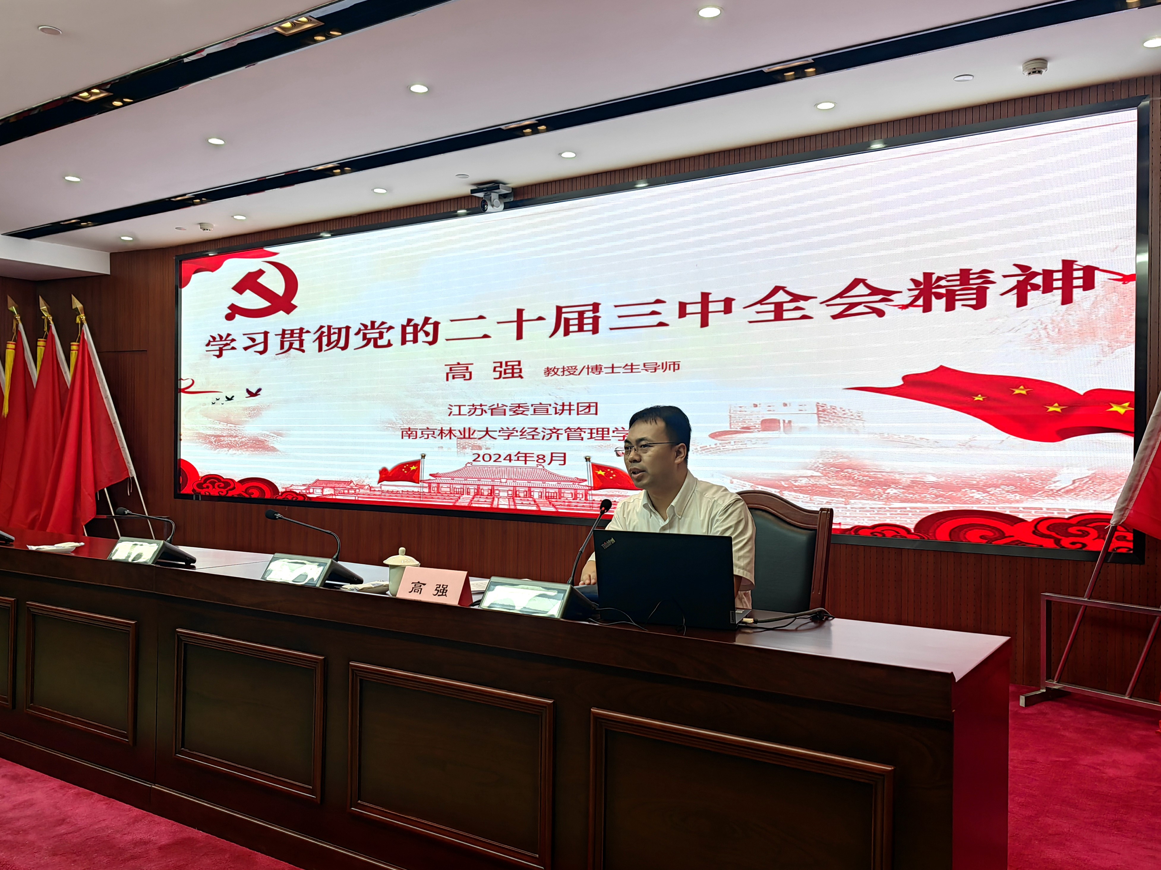 8月19日下午,高强赴省林业局为全体党员干部作专题宣讲报告。高强指出,在新的历史起点上进一步全面深化改革,任务重、责任大,要强化理论武装,把学习贯彻全会精神同学习领会习近平总书记关于全面深化改革的一系列新思想、新观点、新论断贯通起来,要加强党的领导,坚持整体推进,准确把握改革的战略重点,要务求改革实效,真正让人民群众在改革中不断增强获得感、幸福感、安全感。宣讲紧扣全会主题,把握精神要义,论述透彻、逻辑严谨、深入浅出,为省林业局全局党员干部更好地理解把握党的二十届三中全会精神提供了有力的指导和帮助。