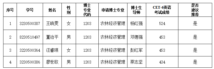 经个人申请,学院资格审查和专家组考核,报经院研究生招生工作领导小组审定,现将2025年硕博连读研究生选拔拟推荐名单公示如下。
