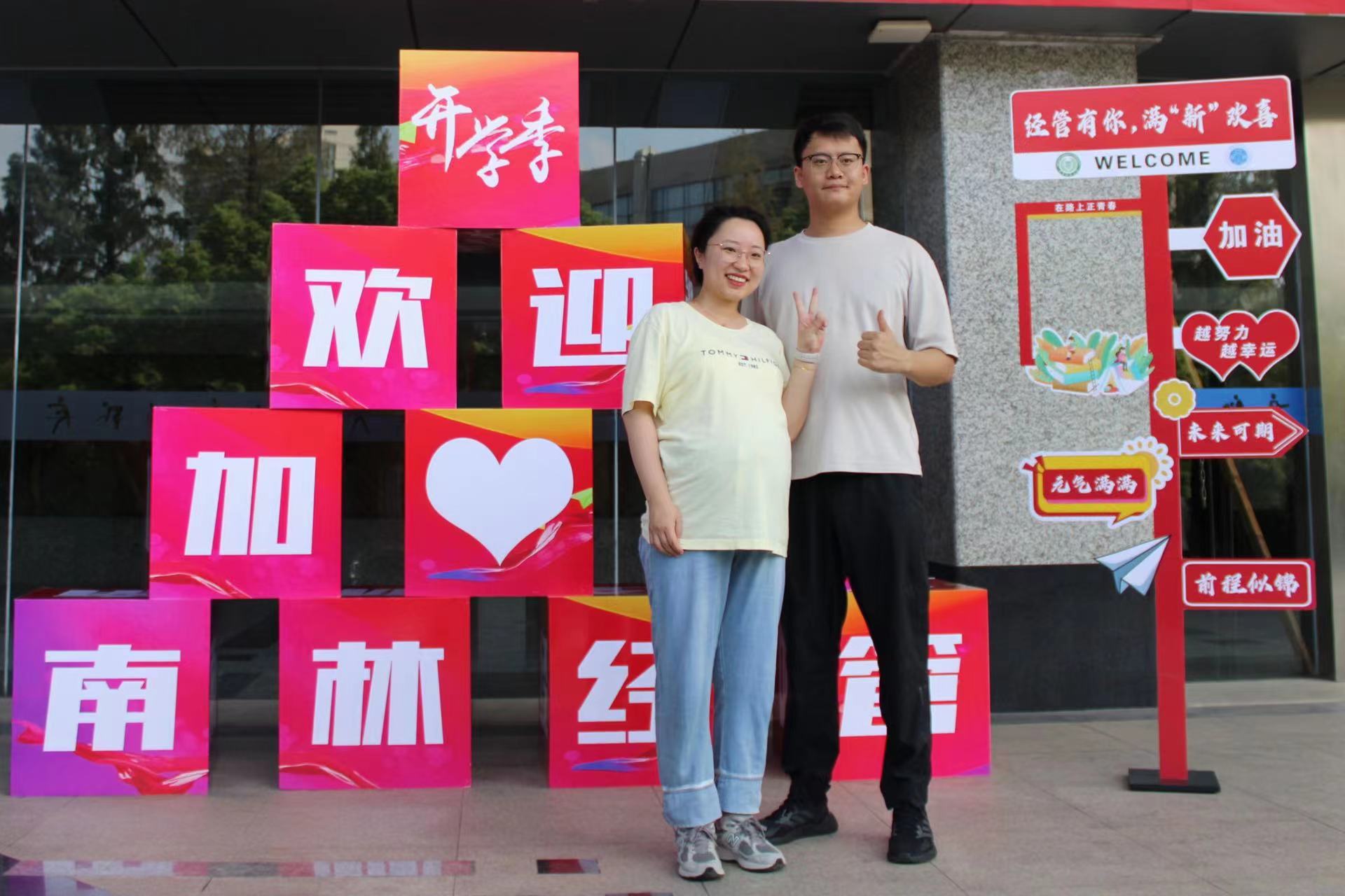 此外,今年学院也在迎新帐篷旁摆放了“开学季”的方块金字塔地标,以及“经管有你,满‘新’欢喜”的打卡立牌,众多学生和家长纷纷前往合影留念,记录下自己与经管的初次相遇。
