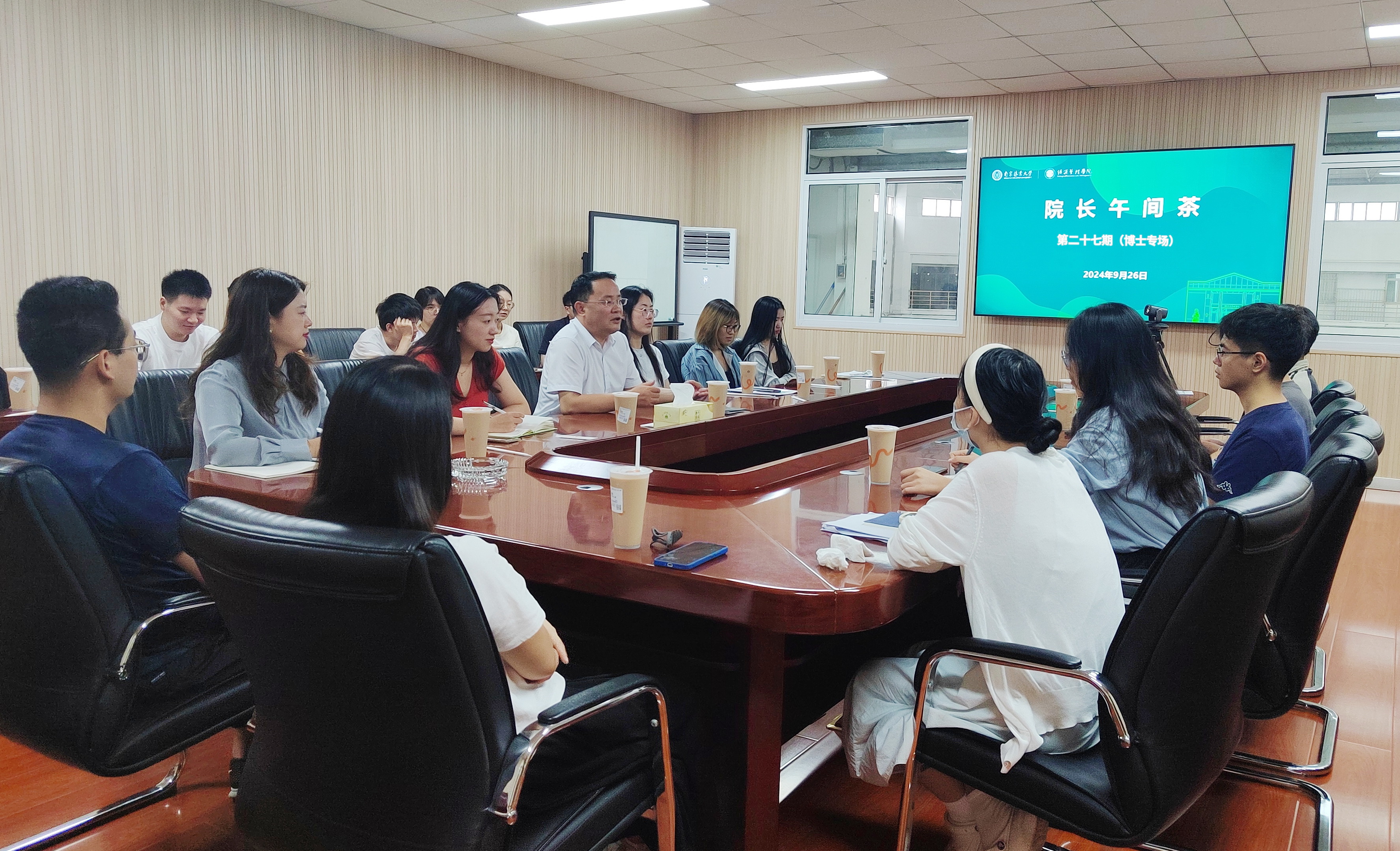 2024年9月26日中午,第二十七期“院长午间茶”(博士生专场)在文科楼C208成功举办。院长杨红强与学院博士生围绕学业规划、科研能力培养等方面进行了深入的交流和探讨。博士生代表、学院团委书记兼学工办主任赵淑颖、研究生辅导员谢冰清参加活动,本次活动由赵淑颖老师主持。
