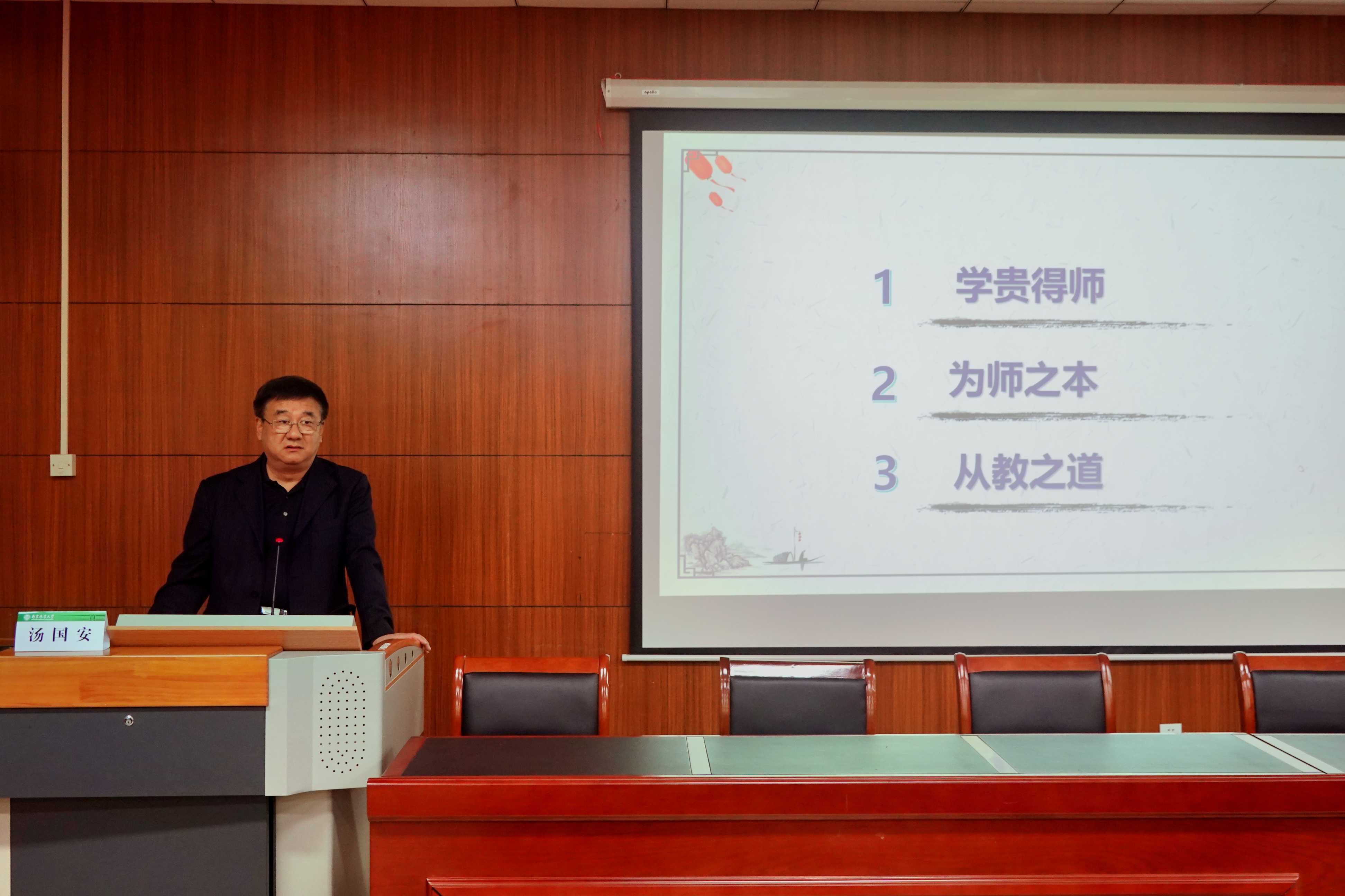 汤国安教授报告内容包含“学贵得师、为师之本、从教之道”三个部分,汤教授从自身年少遇恩师的亲身经历讲起,讲述了夏自强先生在自己学习成长过程中的感人事迹和对自己的培养和教育意义;结合做好四有好老师的标准,阐释了一名优秀教师在学生“三观”养成和成长中的重要地位;汤教授结合“教育家精神”的内涵,着重强调一名合格教师应具备的道德品质、学识智慧、教学能力及示范作用,对学生有爱的投入才会感悟育人的幸福回报,鼓励教师关爱学生,成为学生的好导师、好伯乐。他还寄语青年教师要胸怀国家大局和社会发展需求,平衡教学科研与育人工作,努力培育适应新时代需求的优秀人才。