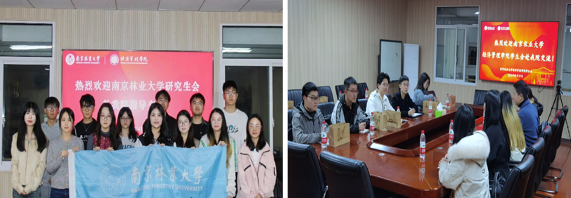 (左图为学院研会成员与校研会主席团合照,右图为学院研究生会与南京农业大学经济管理学院学生会交流会现场)