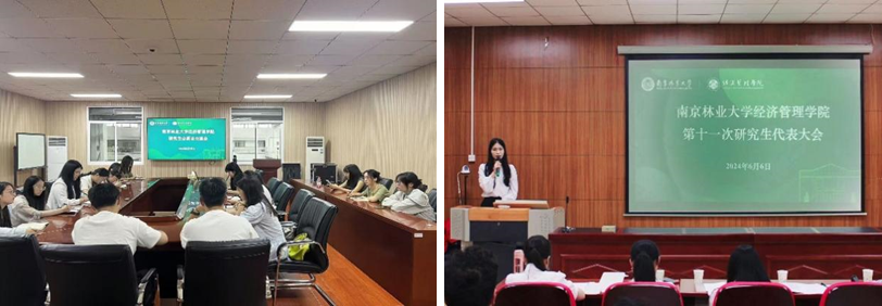 (左图为工作例会现场,右图为经济管理学院第十一次研究生代表大会暨换届大会现场)