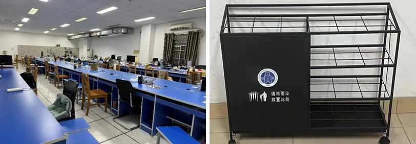 (左图为研究生工作室照片,右图为研究生工作室添置雨伞收纳架照片)